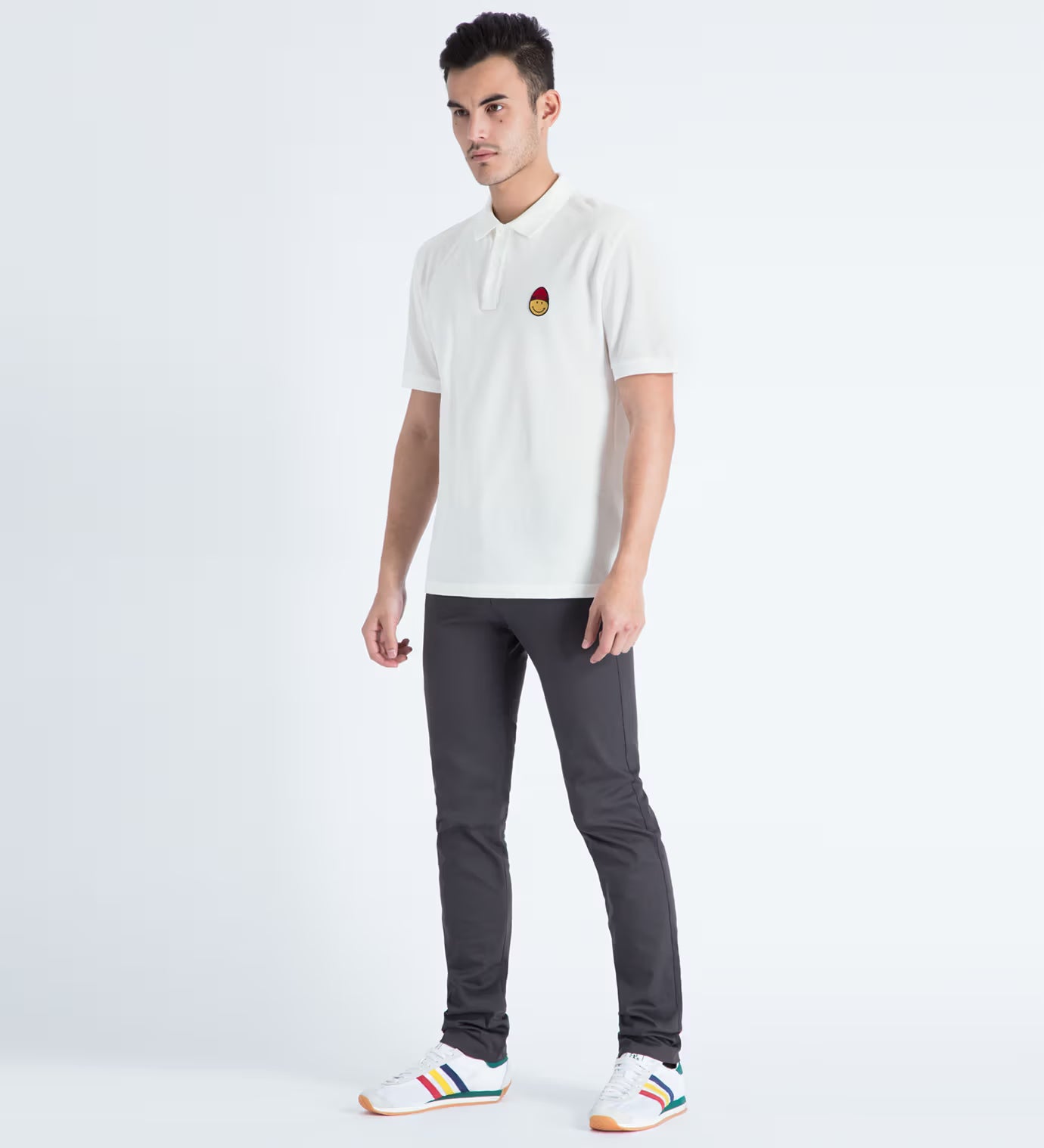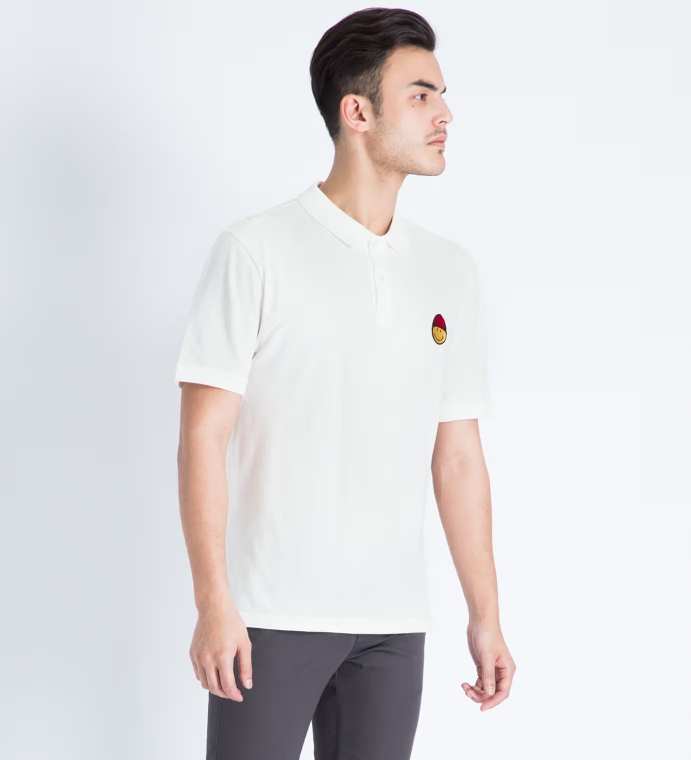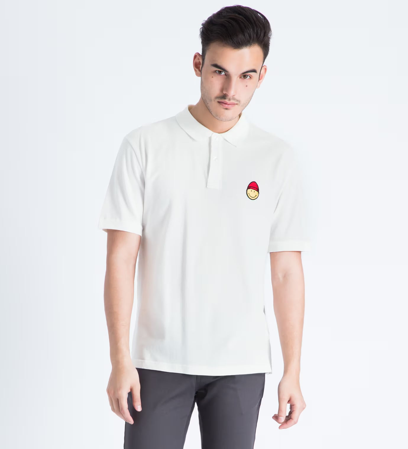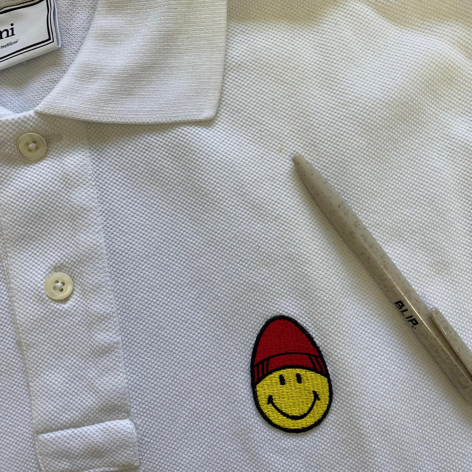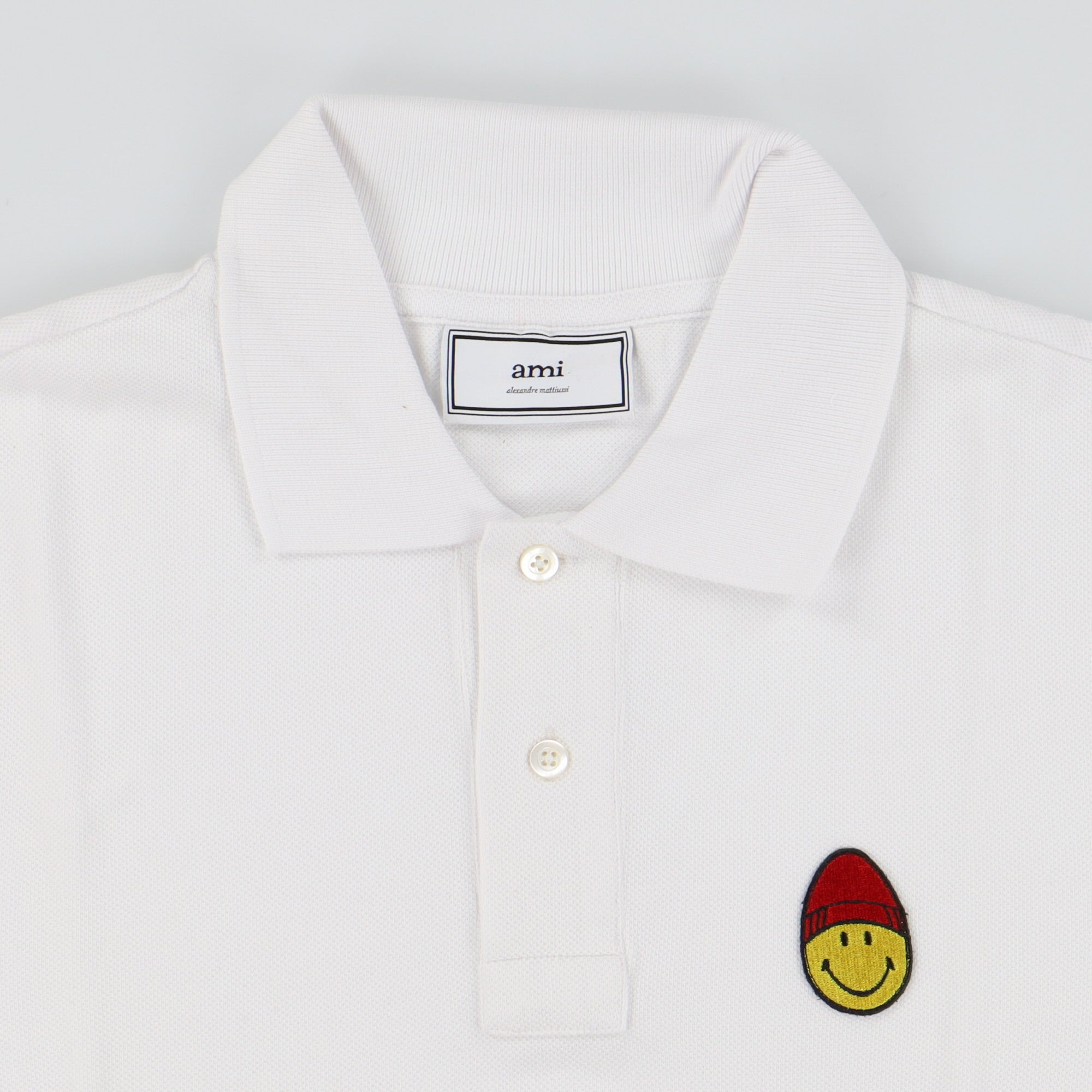 AMI White Smiley Patch Polo