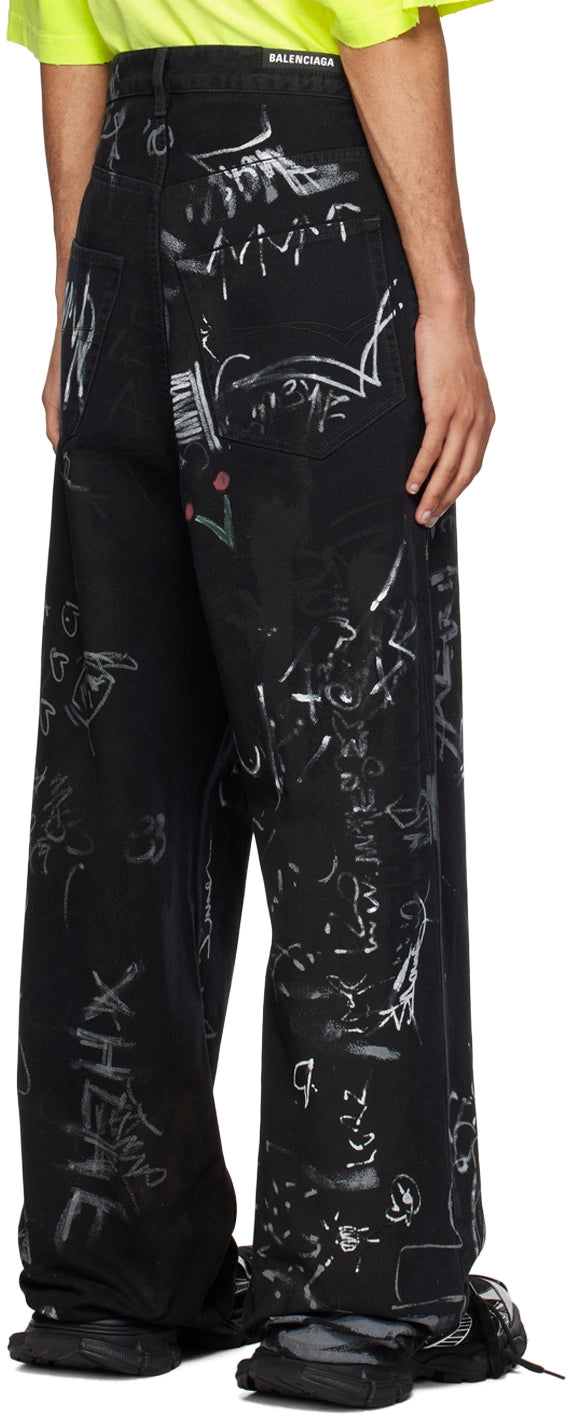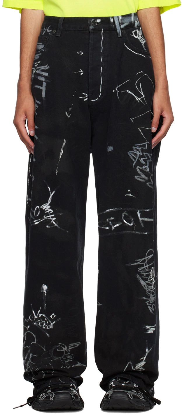 Balenciaga Black All Over Graffiti Baggy Jeans