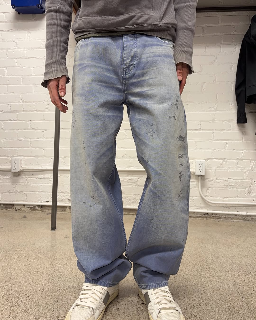 Balenciaga Workwear Purple Distressed Loose Fit Jeans