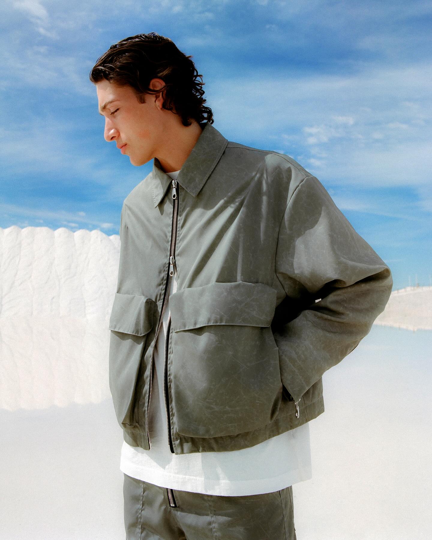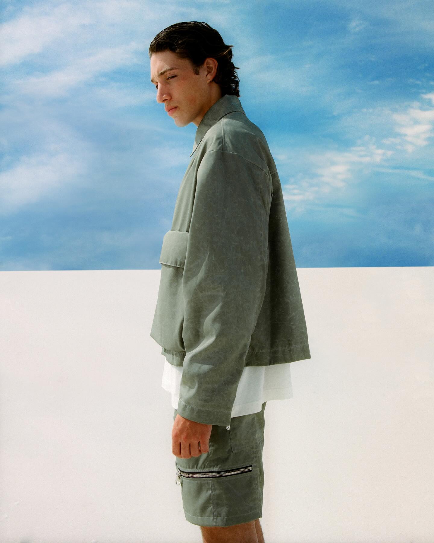 Cole Buxton Green Nylon Combat Oversized Coach Jacket