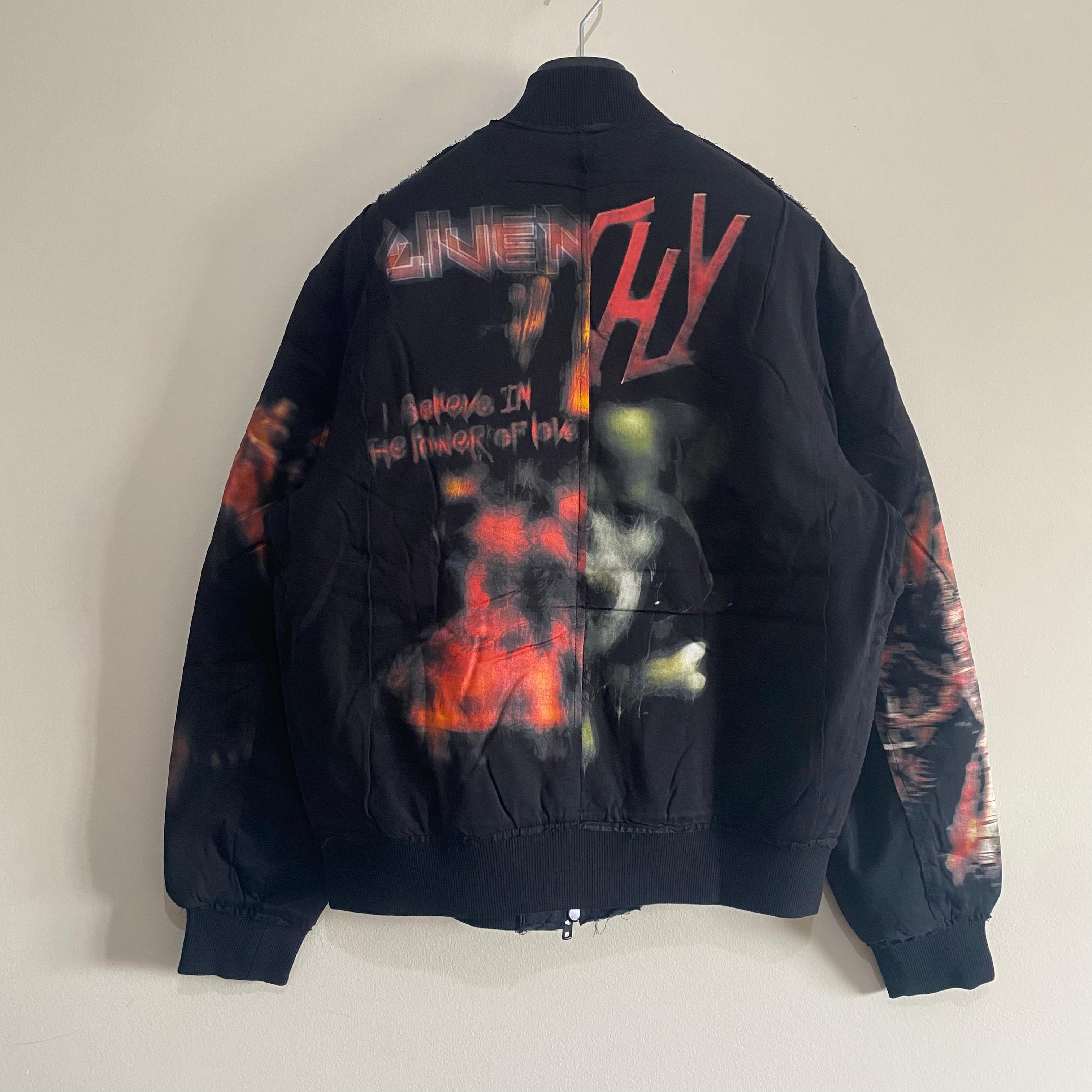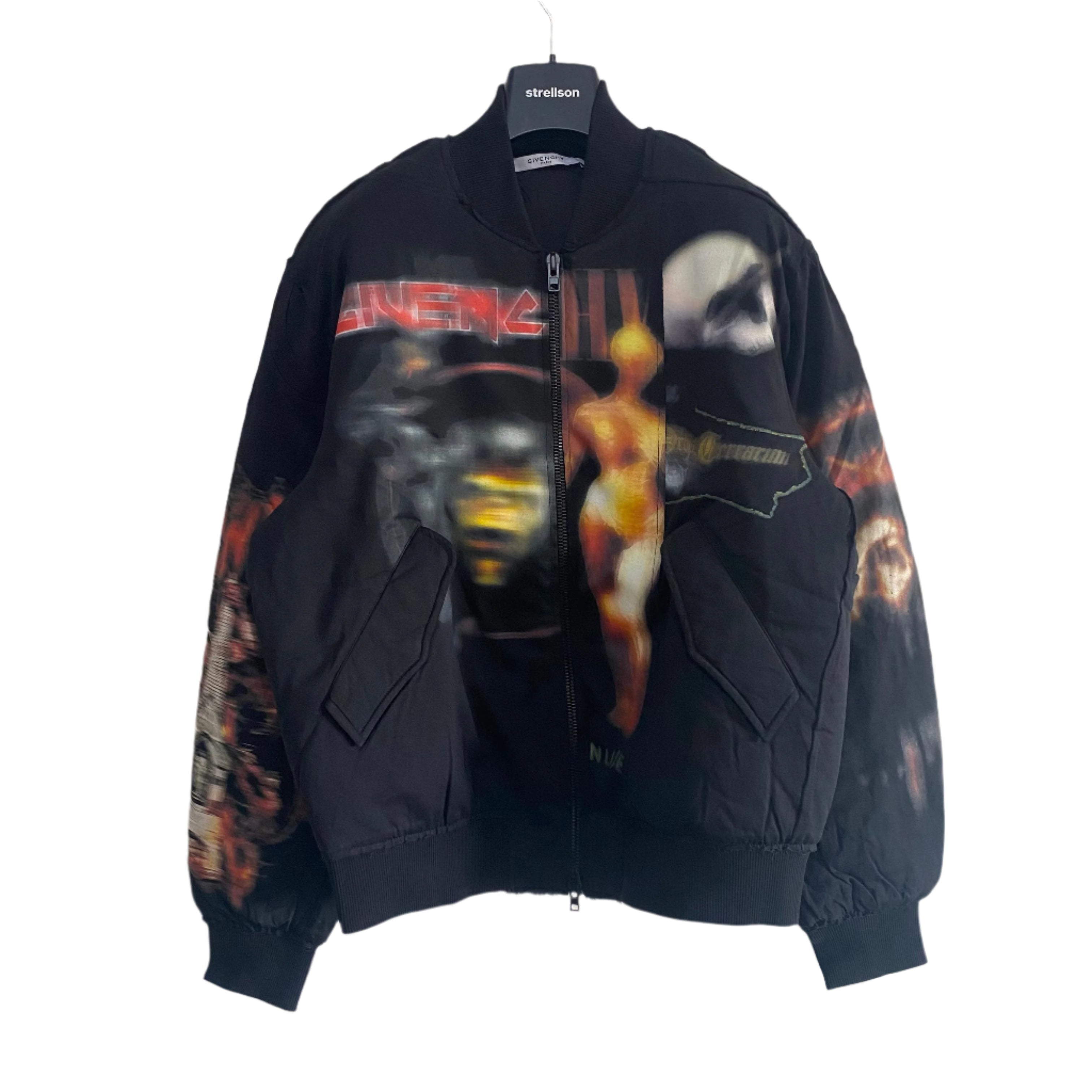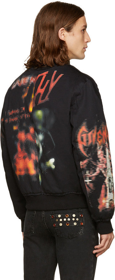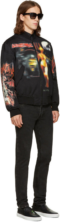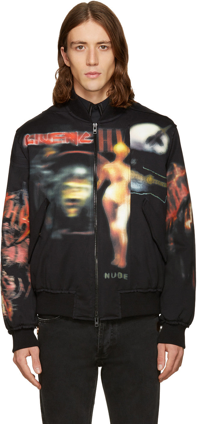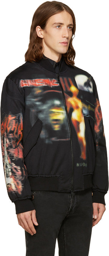 Givenchy Black Heavy Metal Print Bomber Jacket