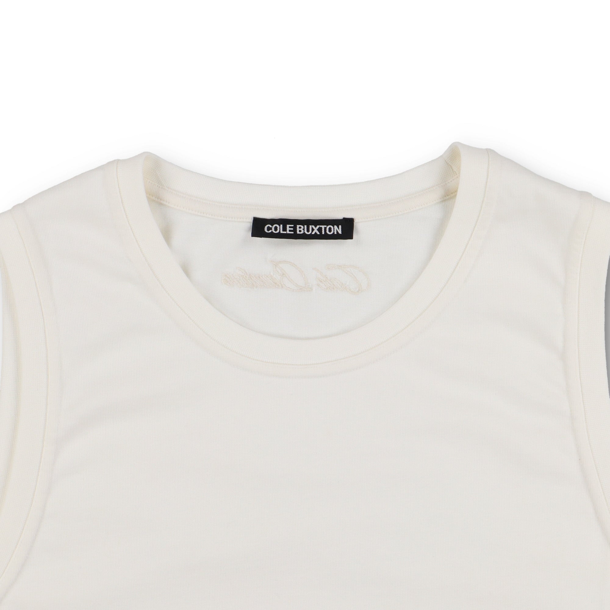 Cole Buxton Vintage White Embroidered Logo Oversized Tank Top
