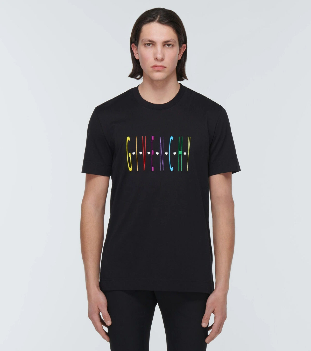Givenchy x Disney Black Embroidered Rainbow Heart Logo T-Shirt