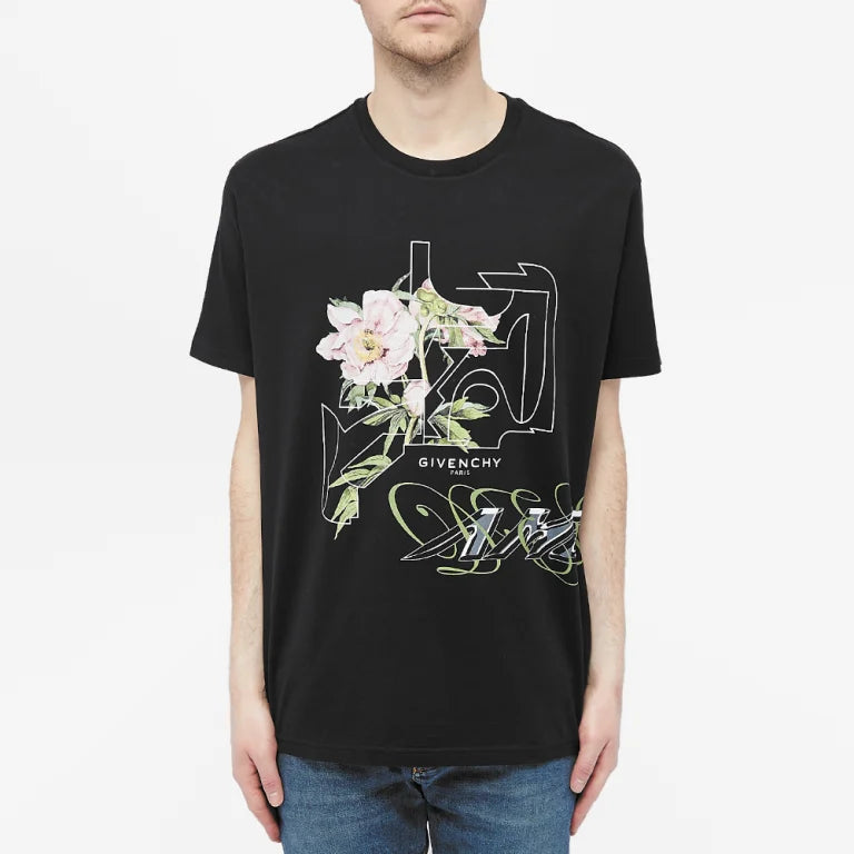 Givenchy Black Peony Maze Print Oversized T-Shirt