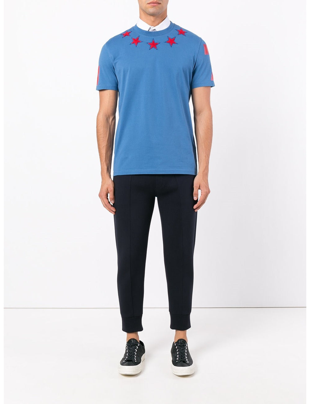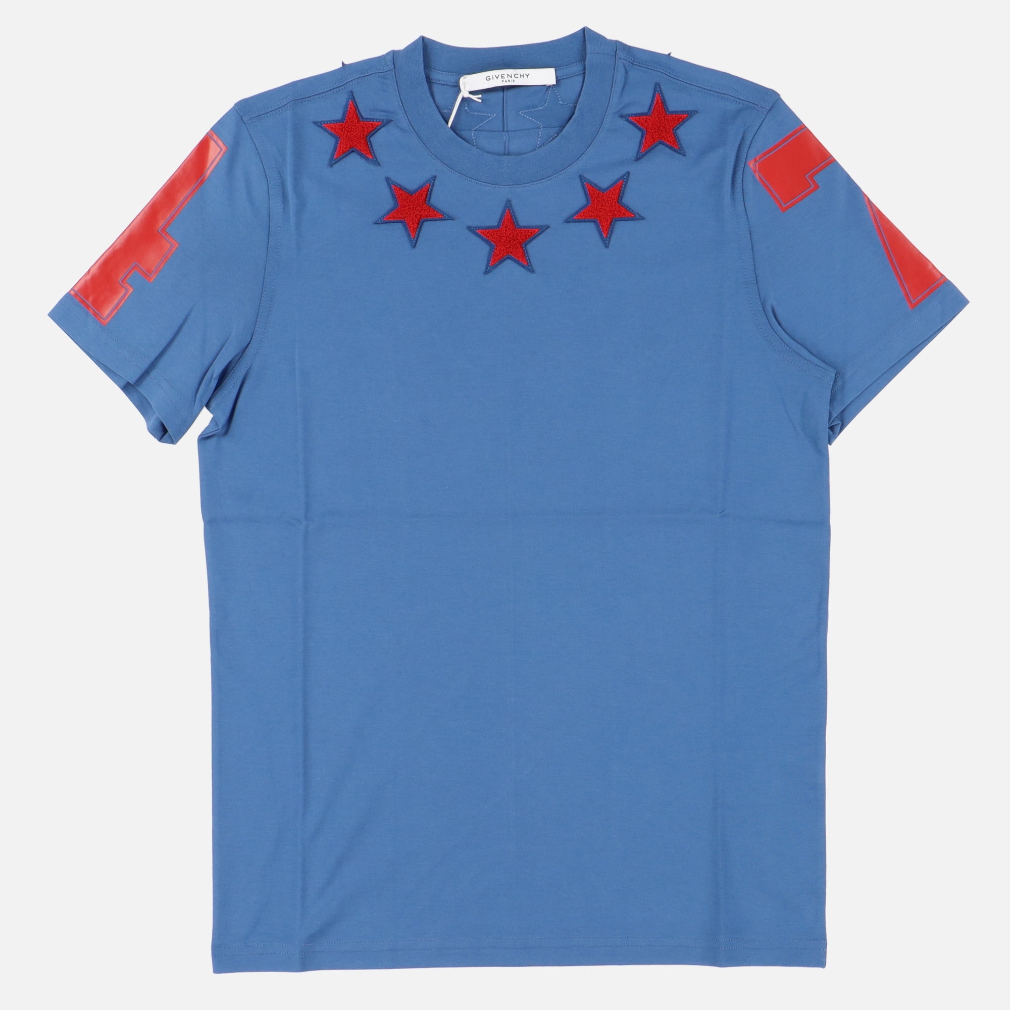 Givenchy Blue and Red Felt 5 Stars T-Shirt