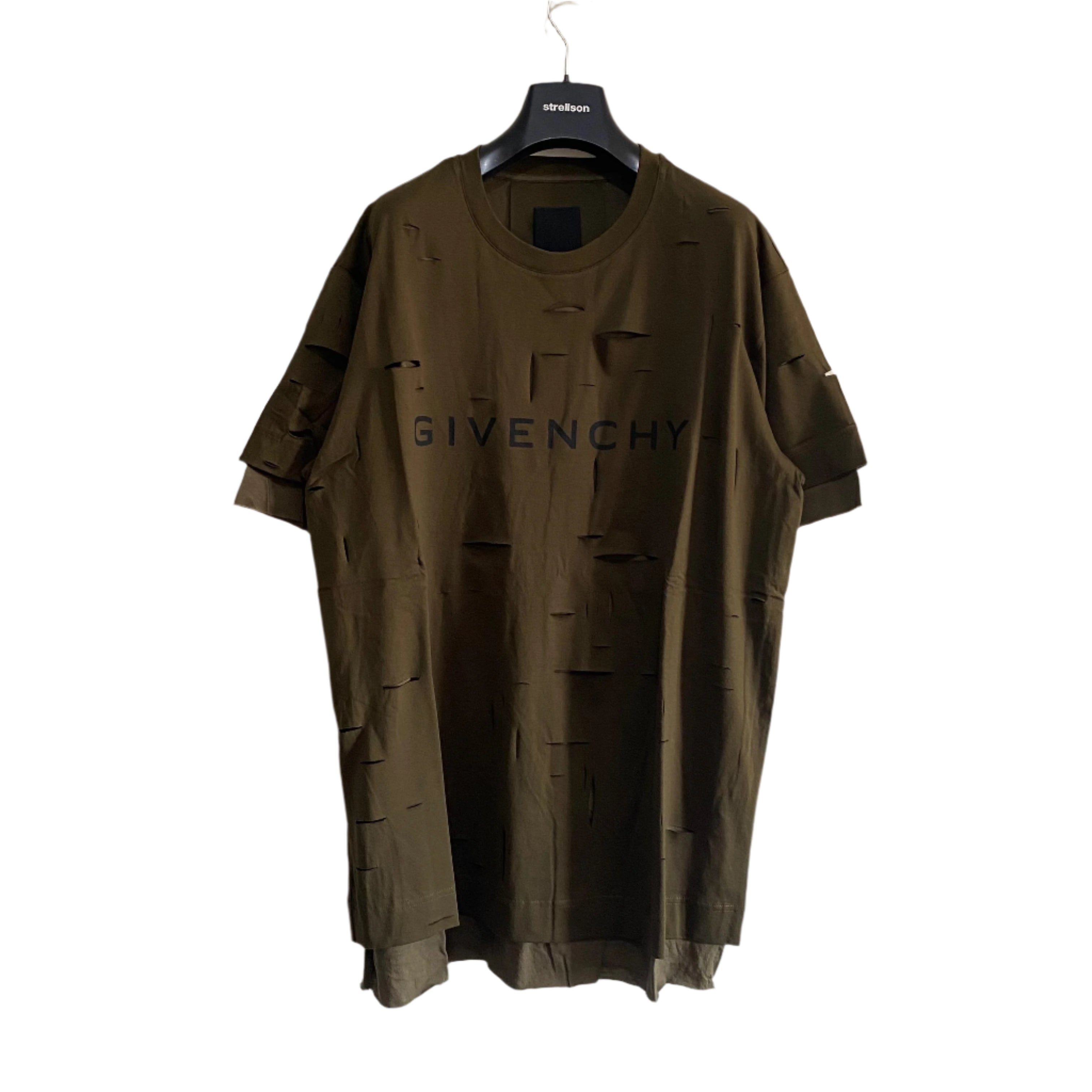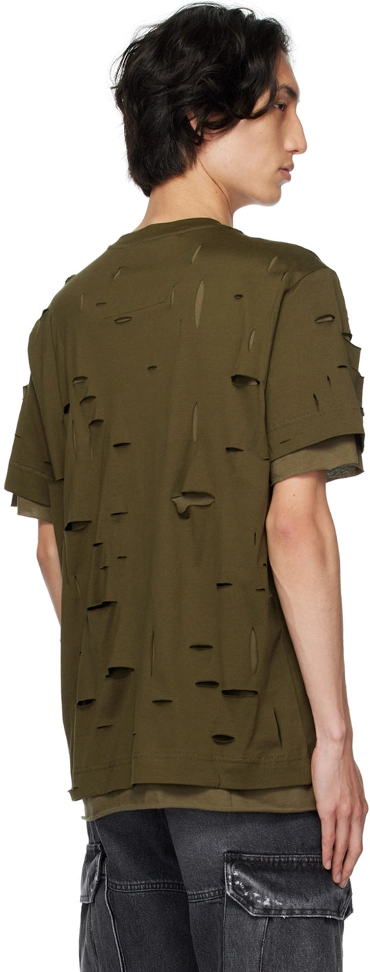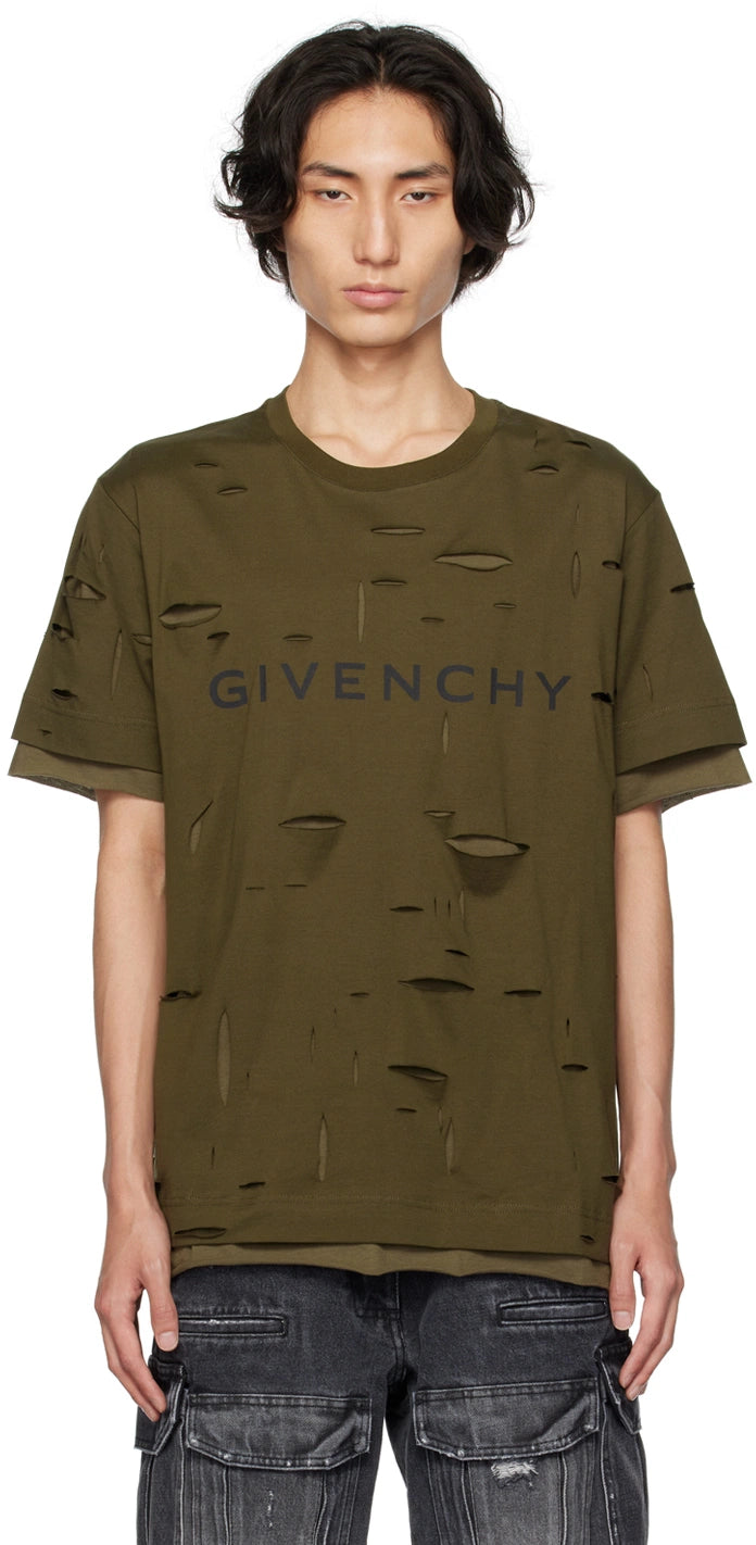 Givenchy Khaki Double Layer Cut-Out Oversized T-Shirt