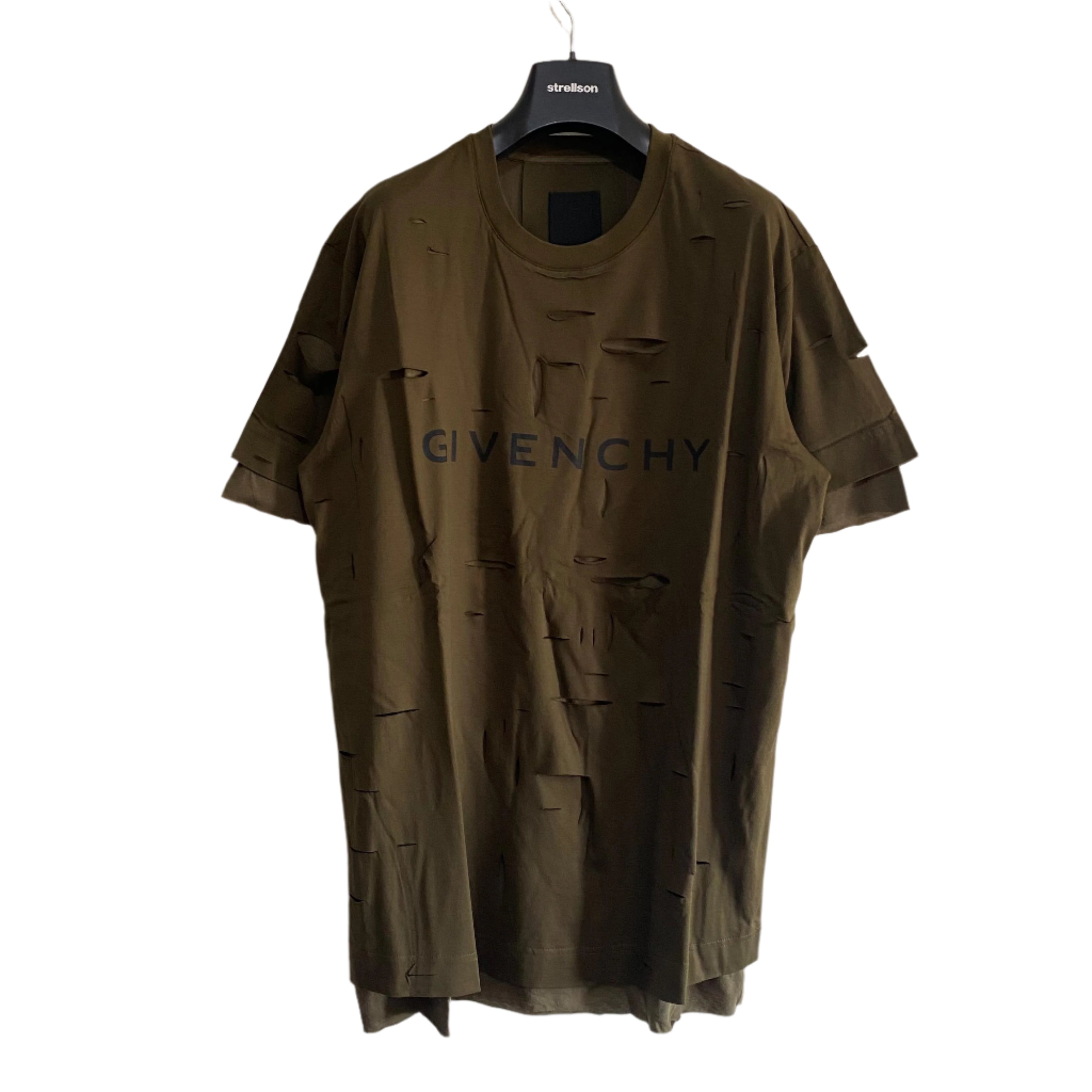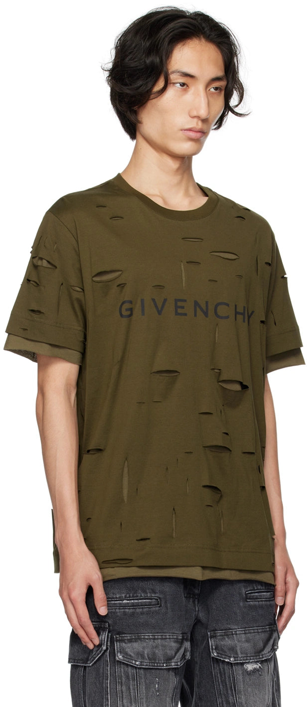 Givenchy Khaki Double Layer Cut-Out Oversized T-Shirt