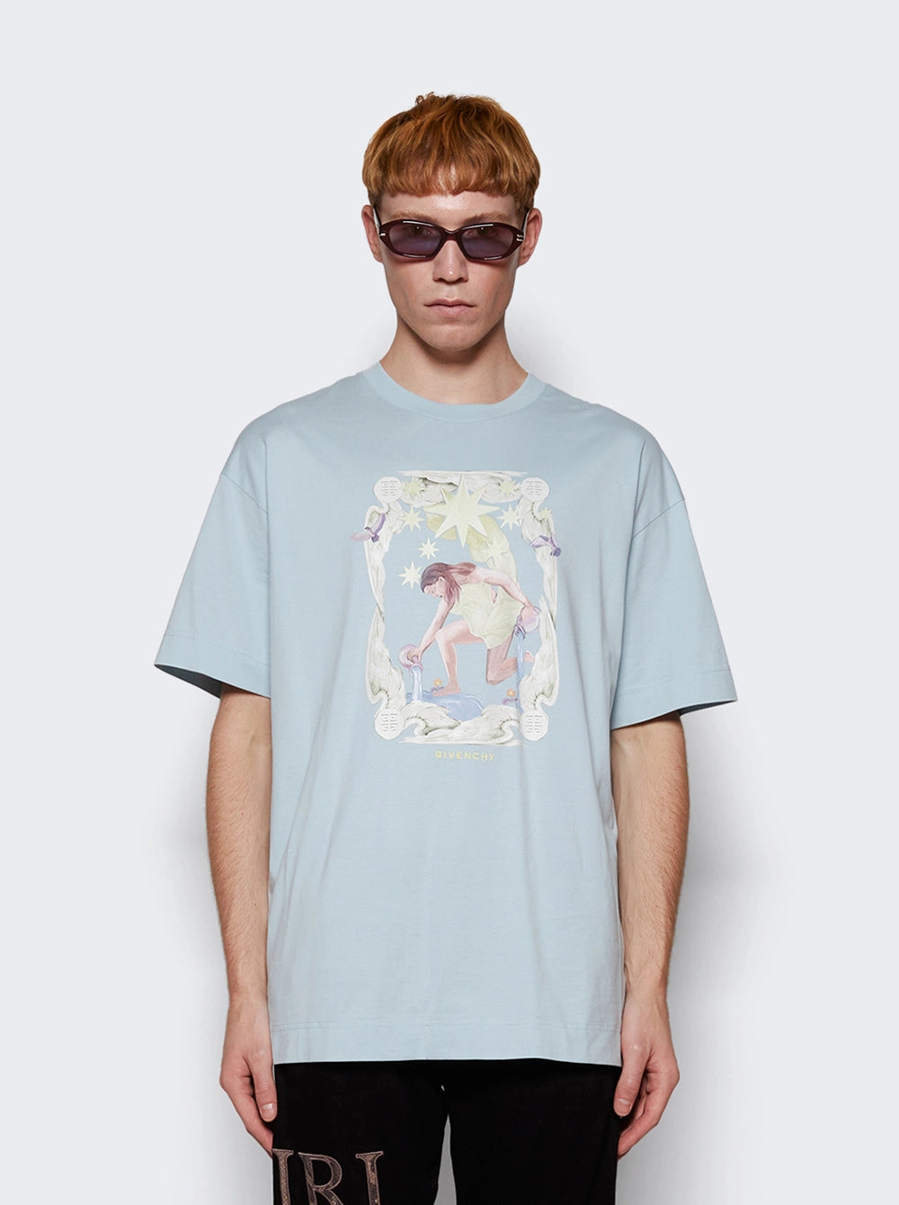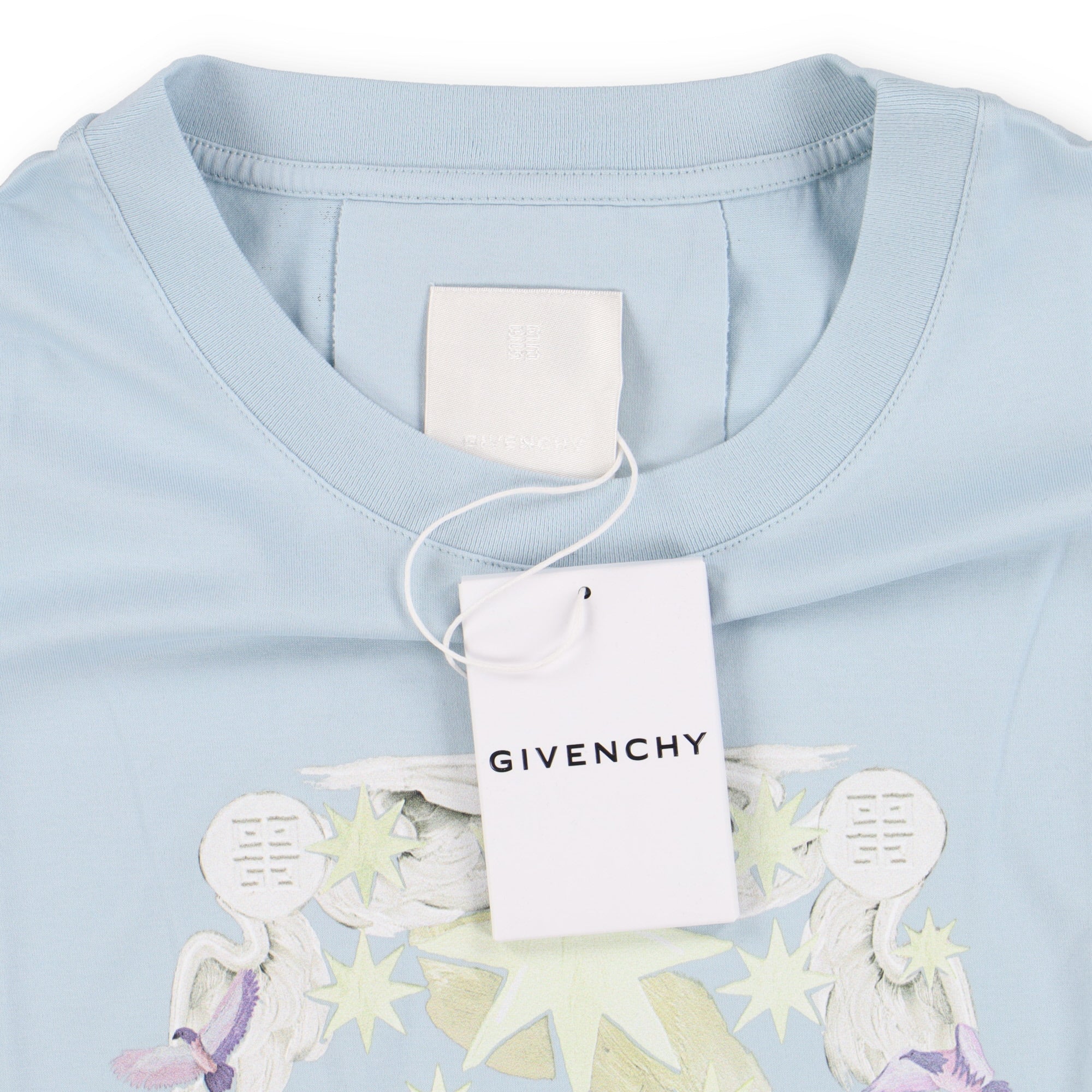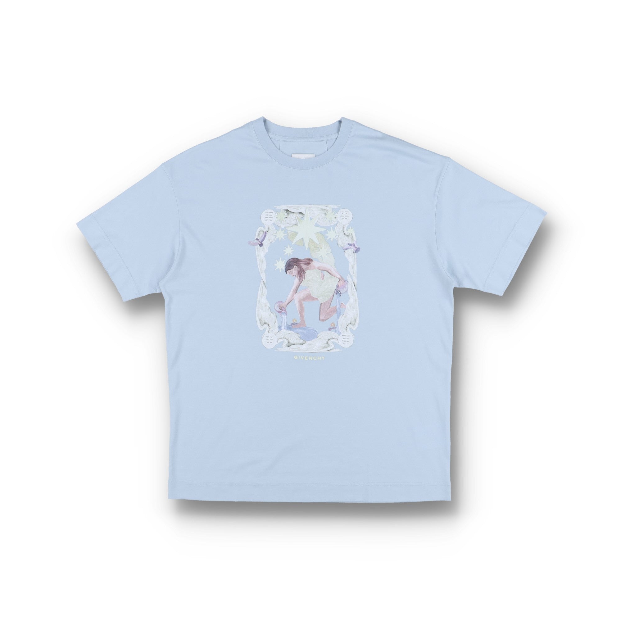 Givenchy Sky Blue Aqua Stars Logo Oversized T-Shirt