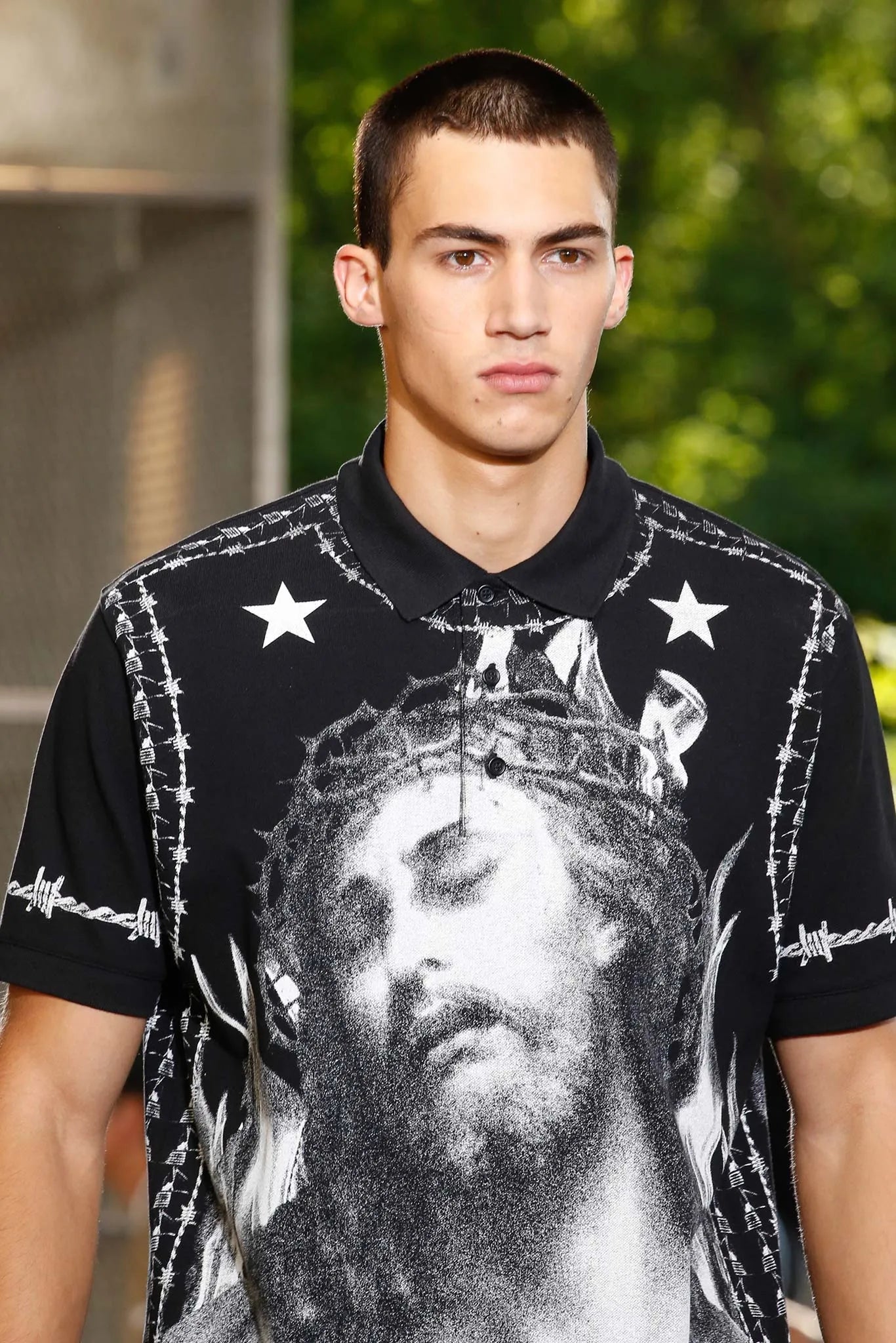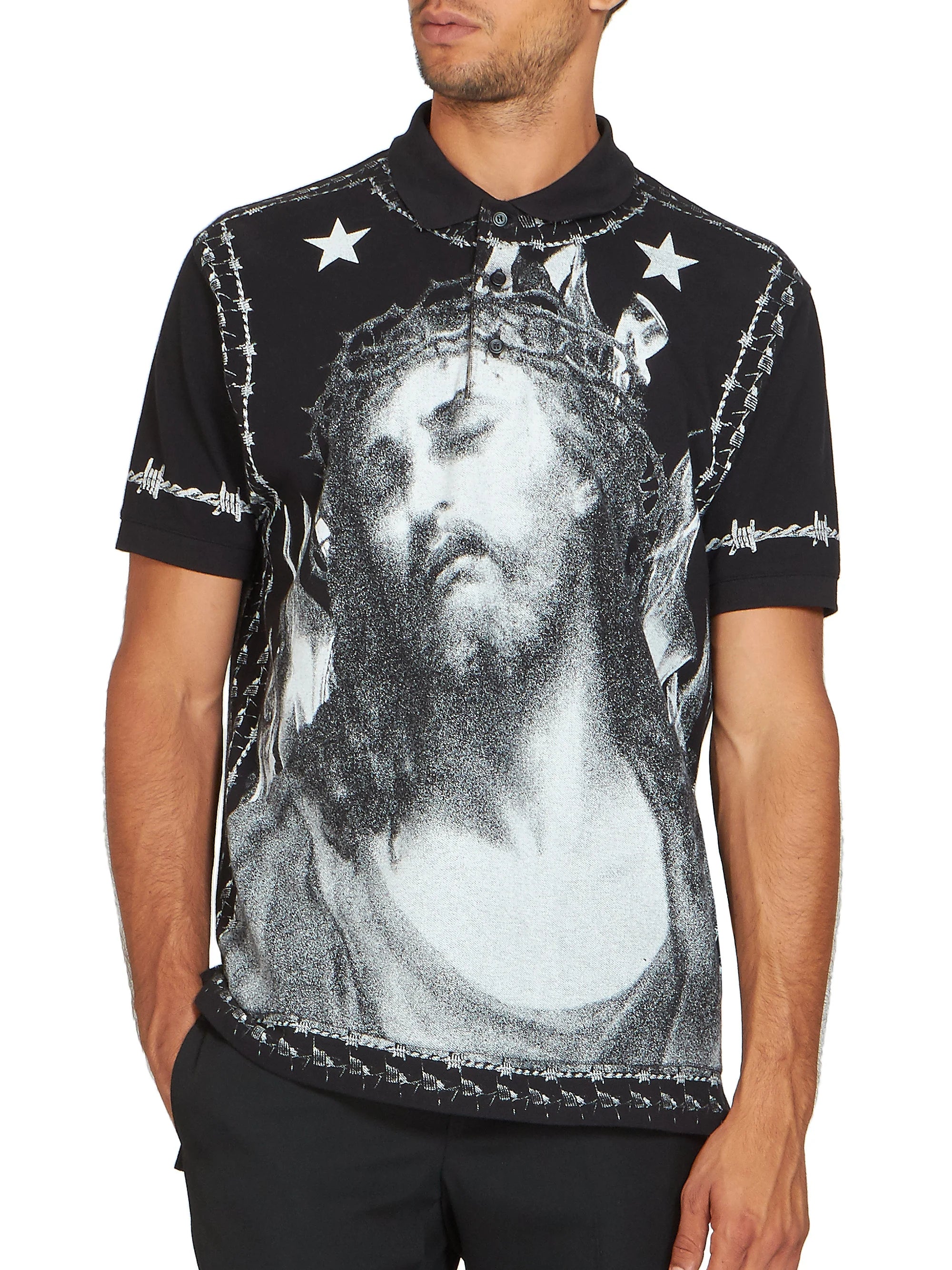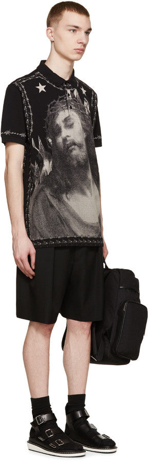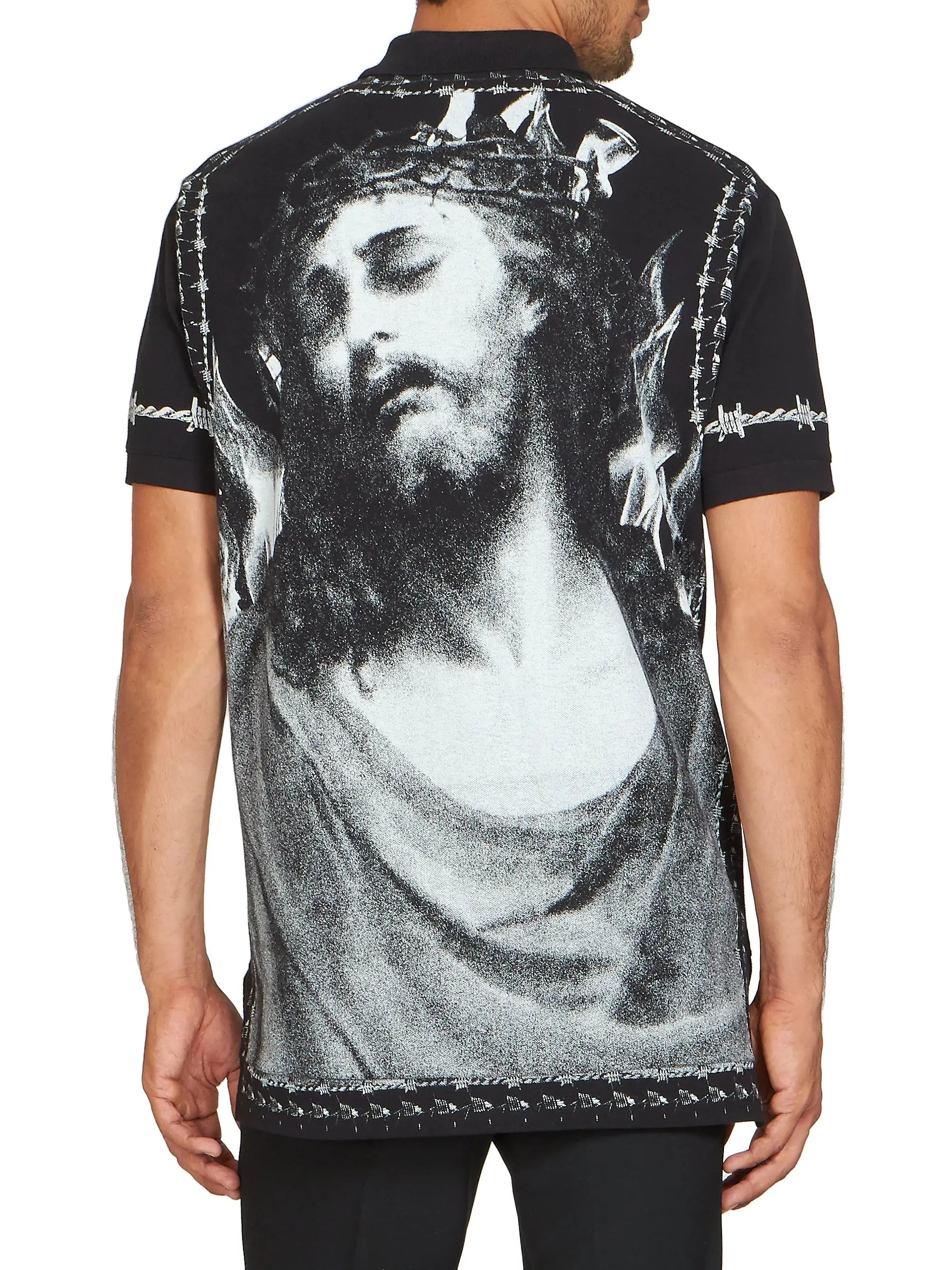 Givenchy Runway Black Barbed Wire Jesus Oversized Polo