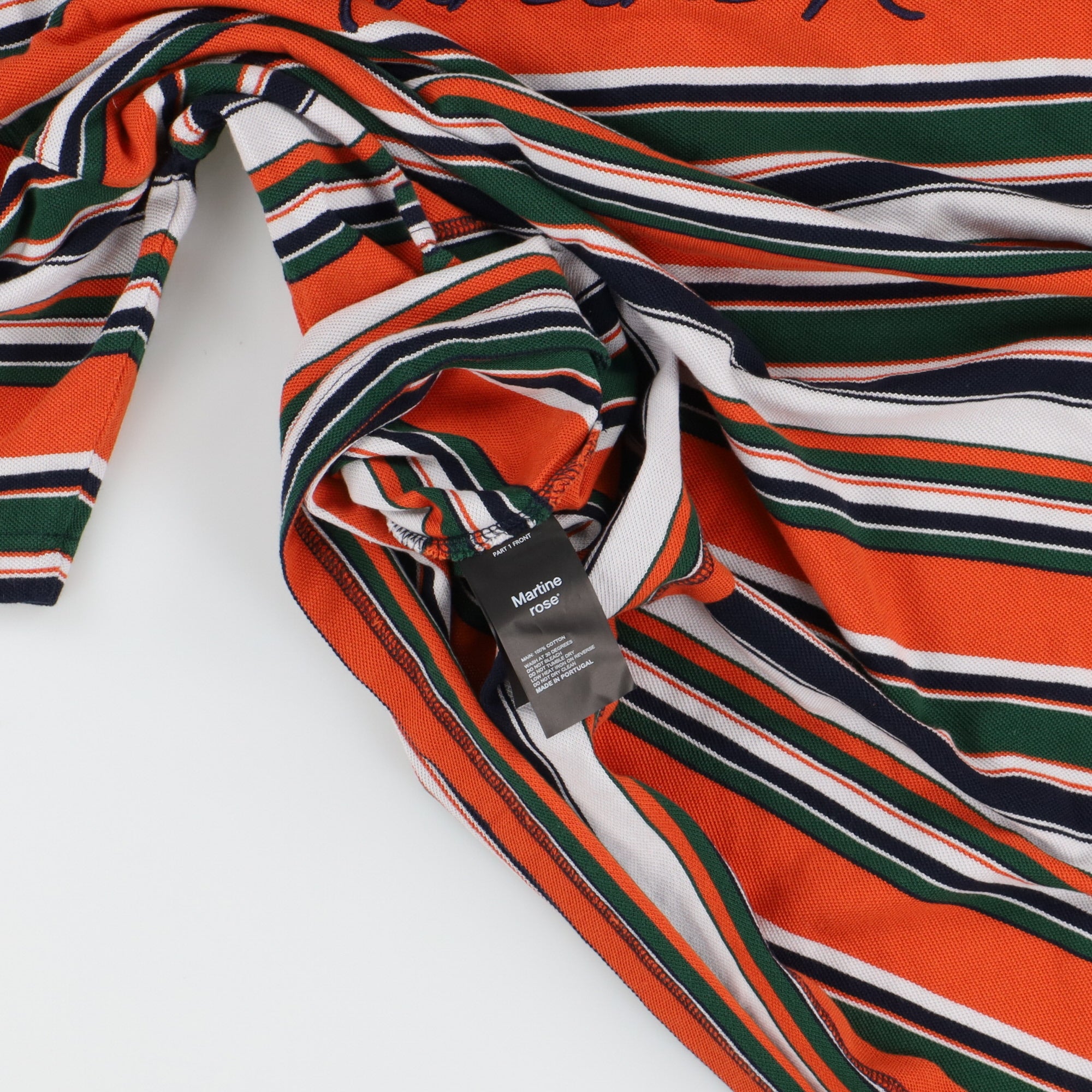 Martine Rose Orange Green Striped Embroidered Logo Polo