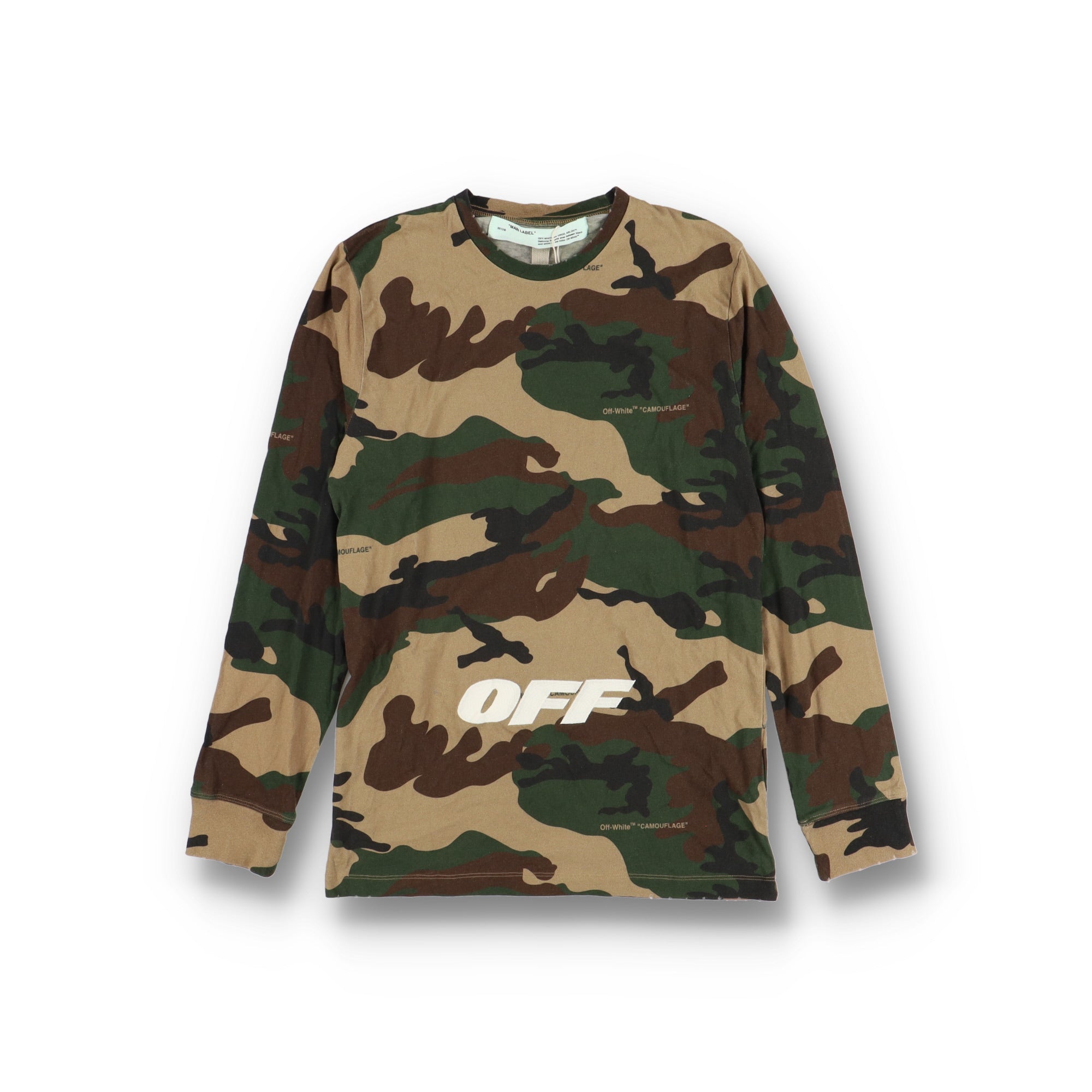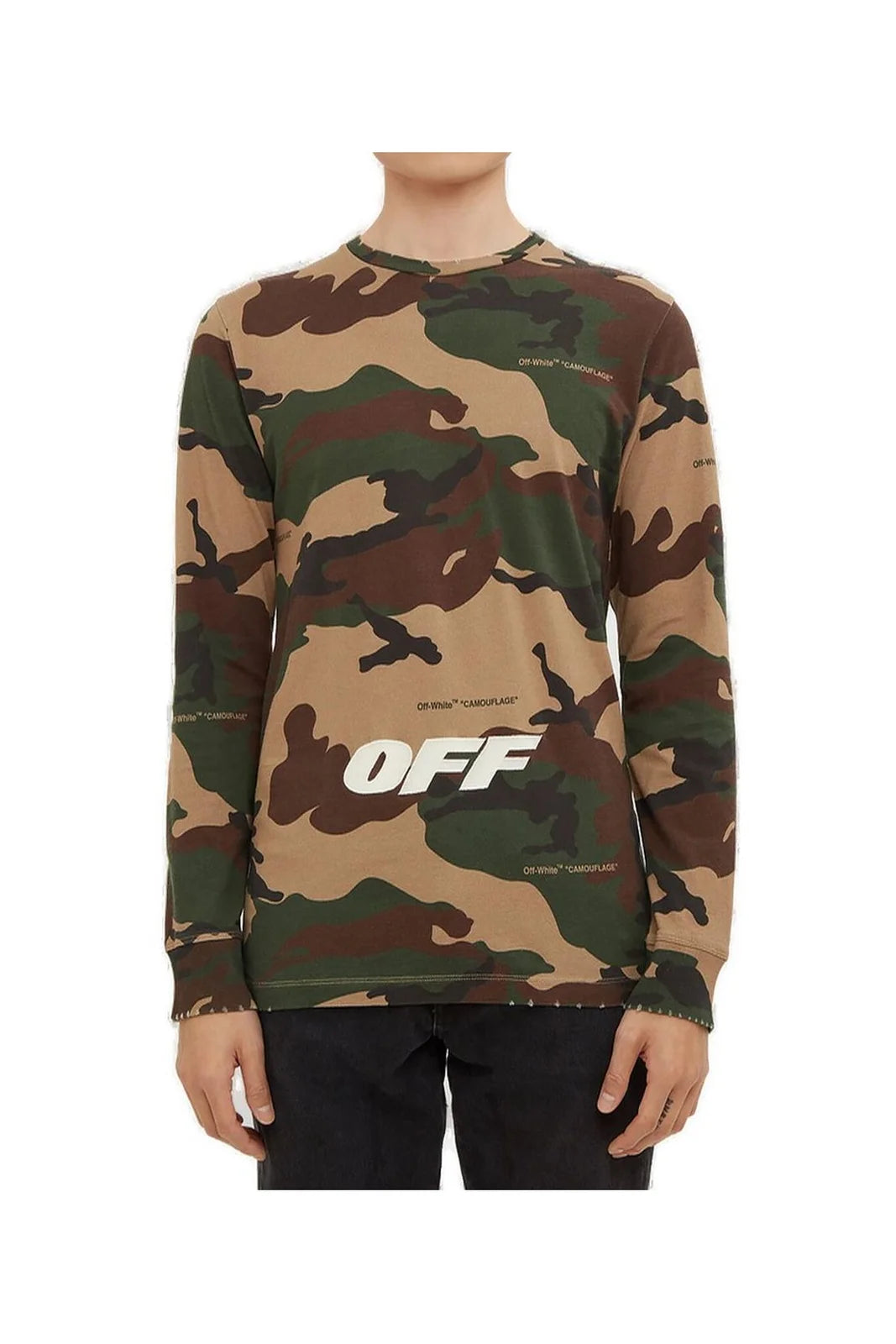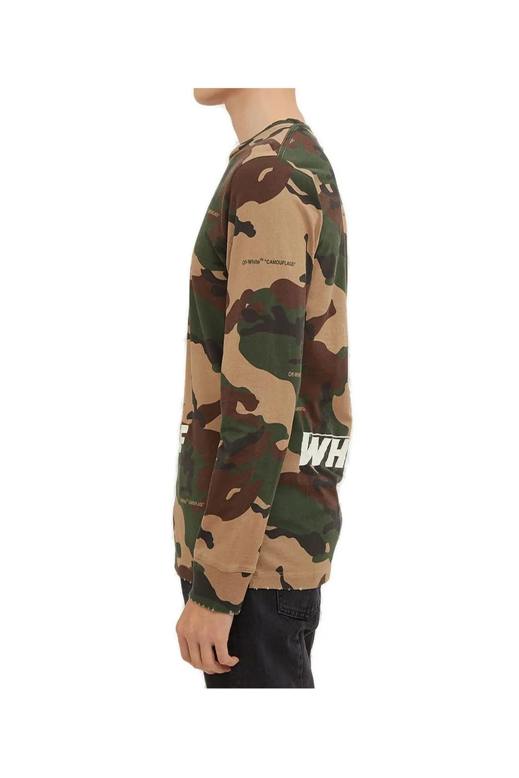 Off-White Camo Embroidered Logo Distressed LS T-Shirt
