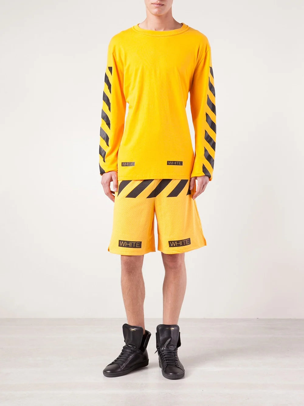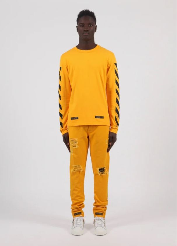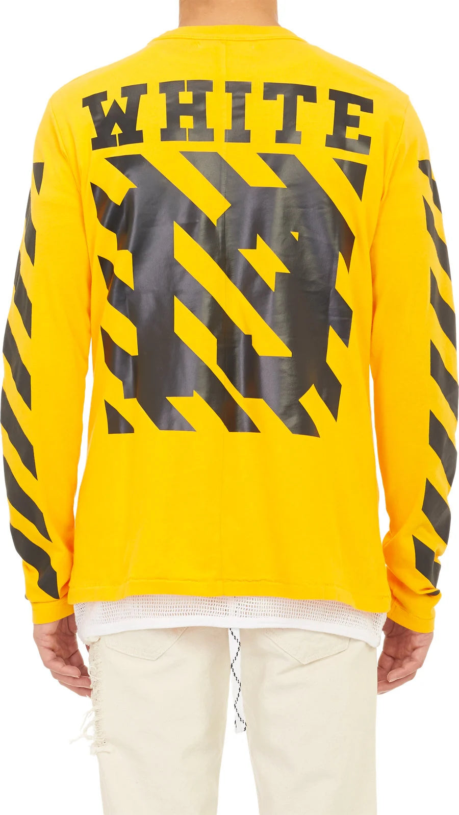 Off-White Yellow 13 Diagonals Logo Long Sleeve T-Shirt