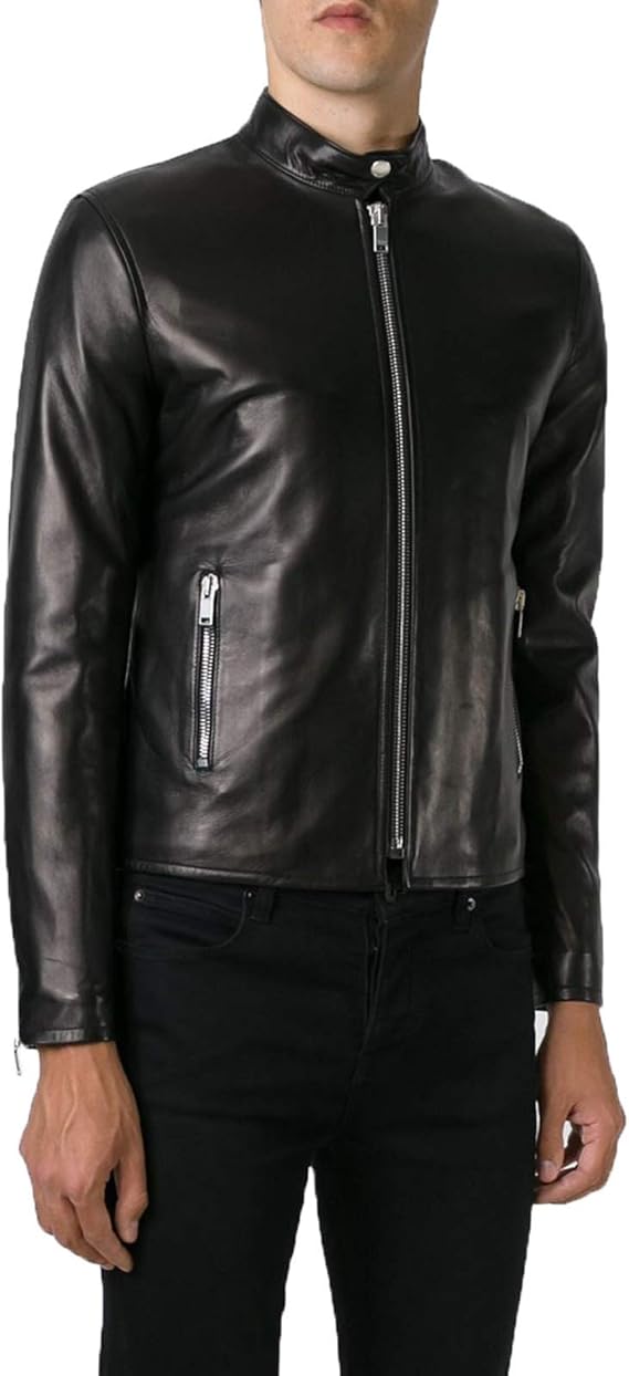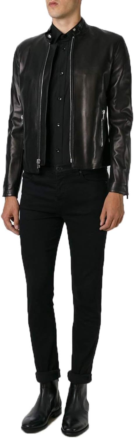 Saint Laurent Paris Black Keith Cafe Racer Leather Jacket