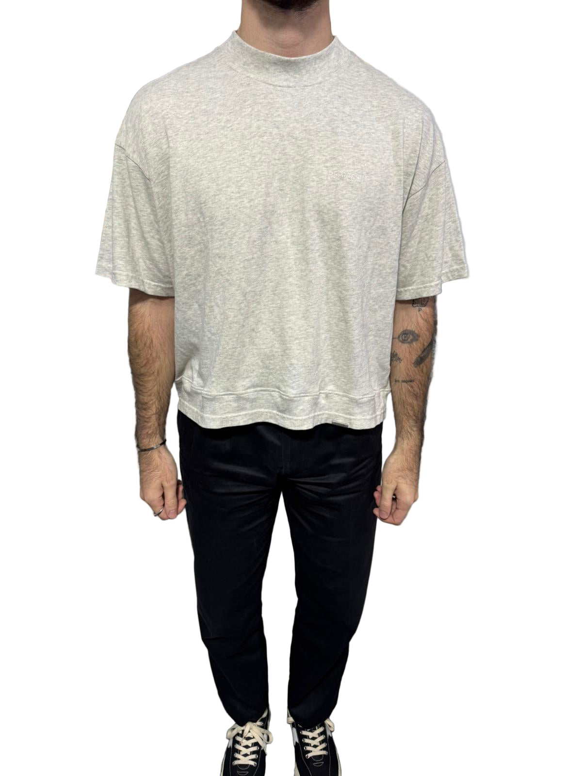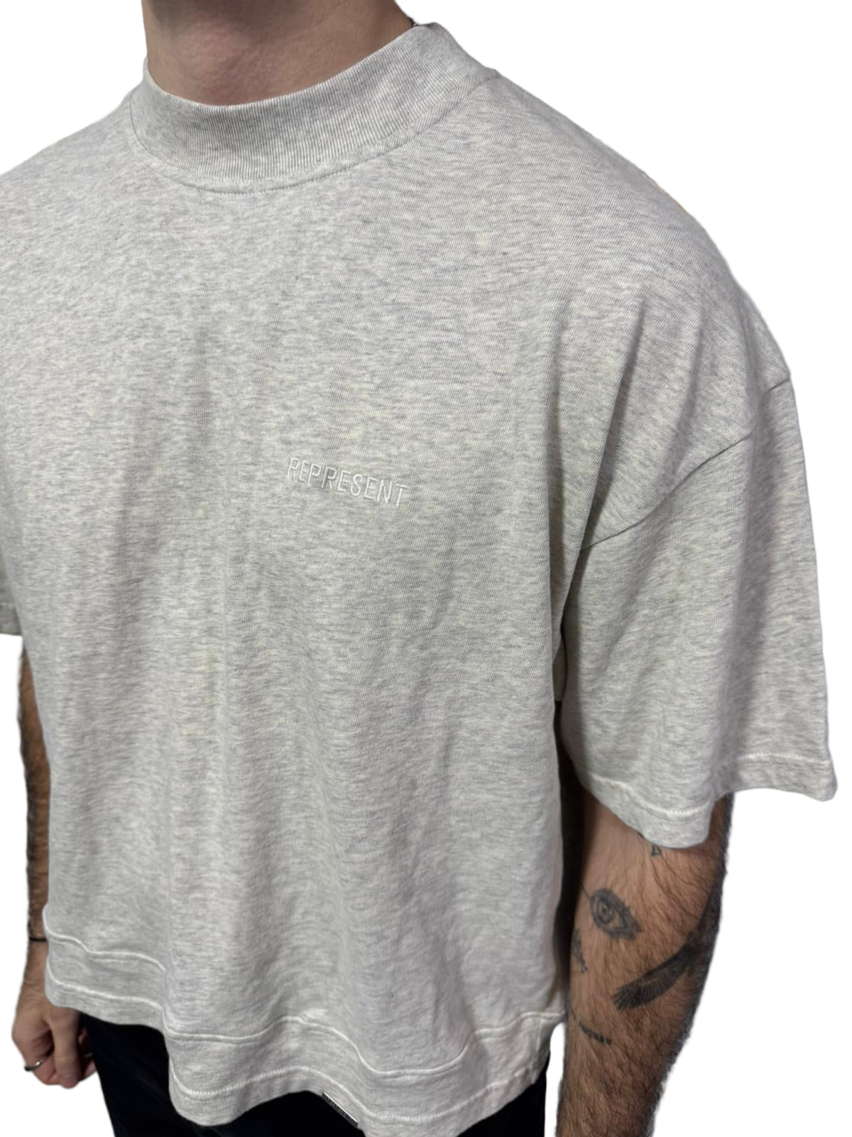 Represent Clo. Grey Cream Marl Embroidered Logo Boxy T-Shirt