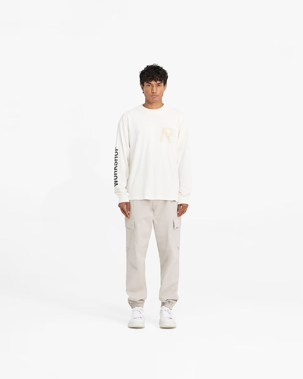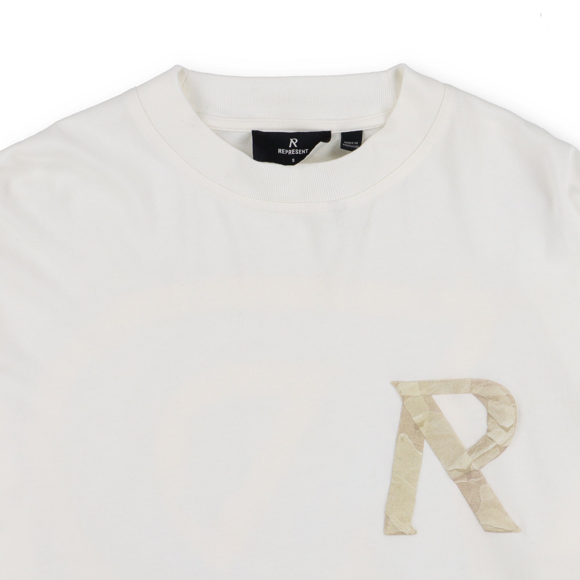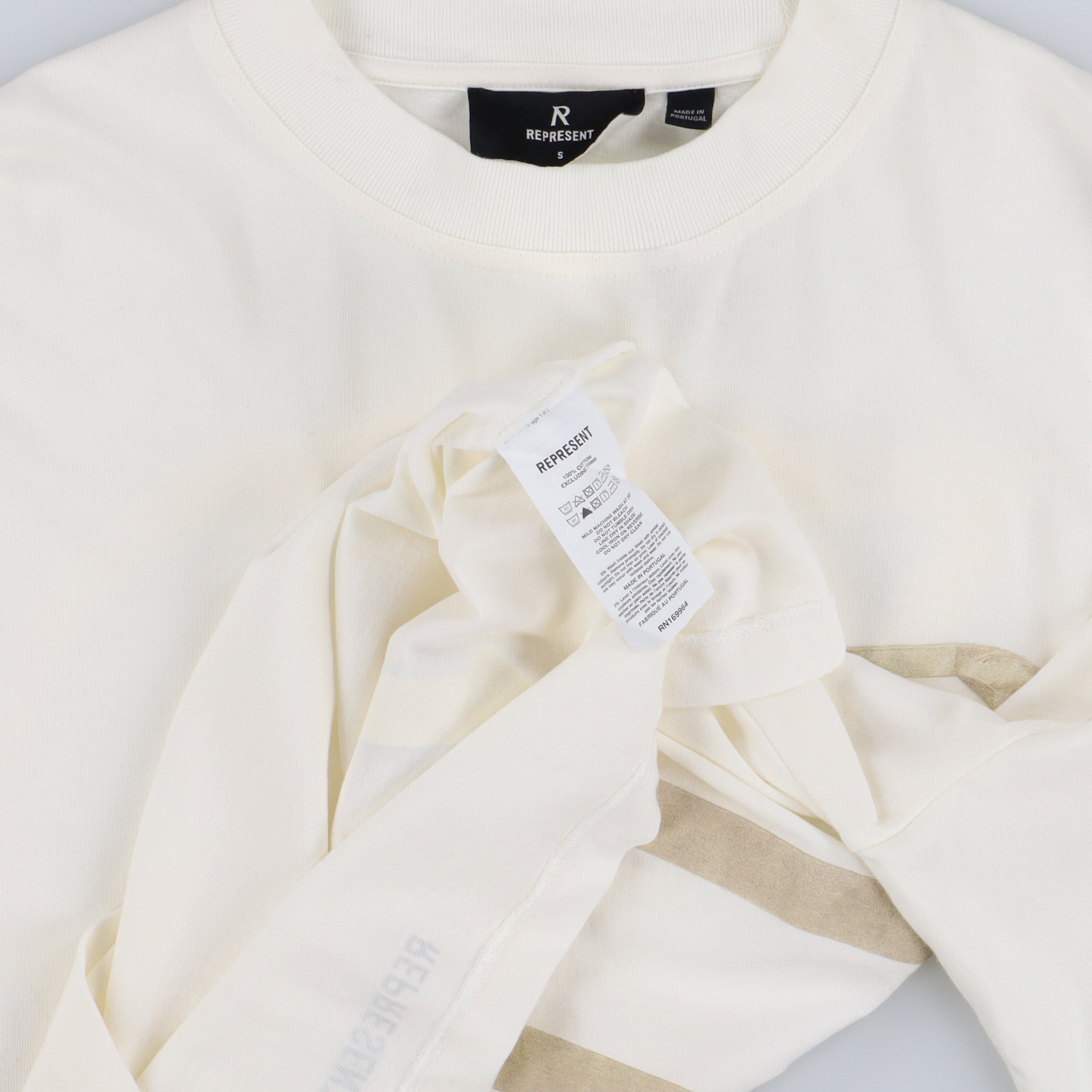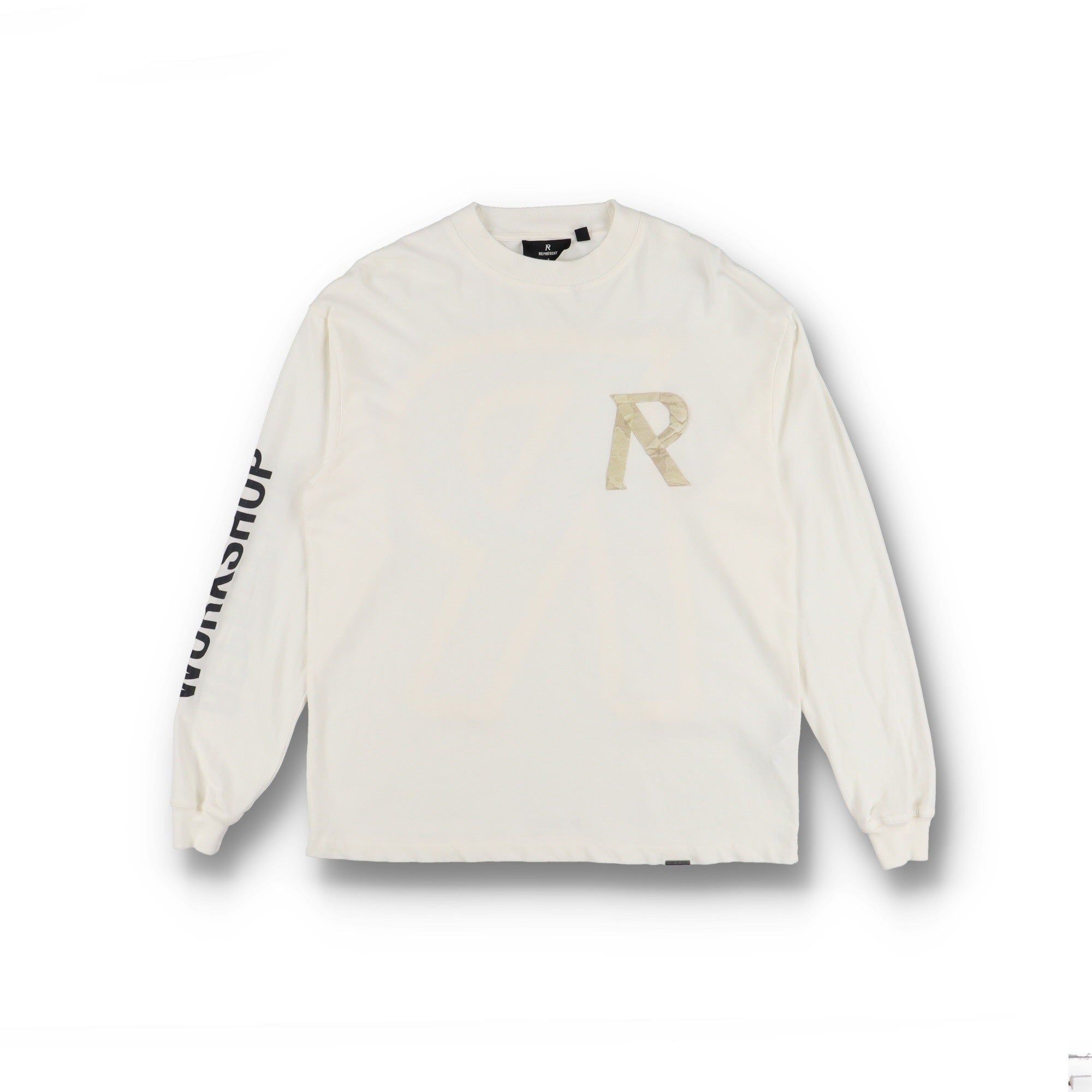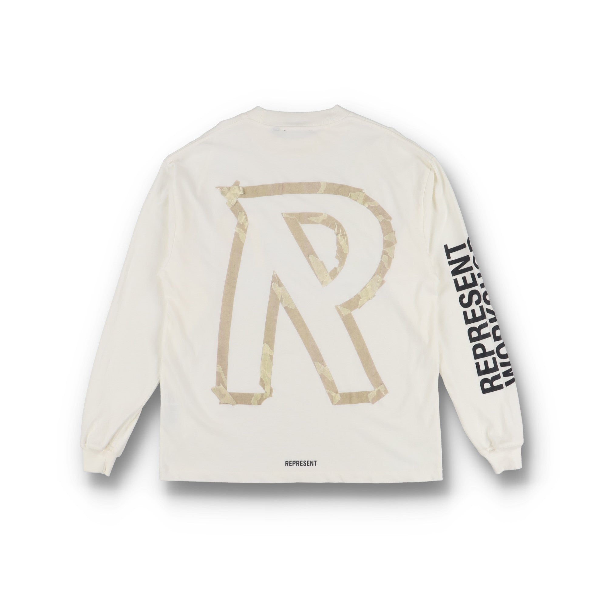 Represent Clo. White Tape Logo Oversized Long Sleeve T-Shirt