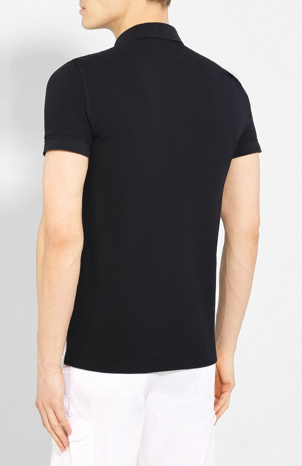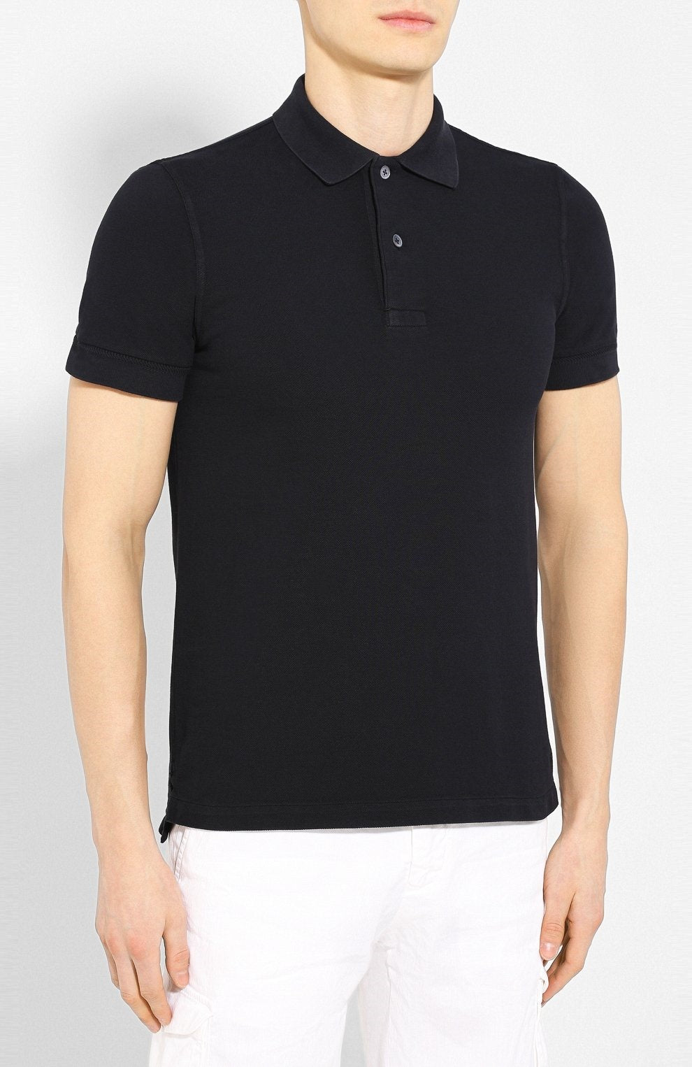 Tom Ford Black Tennis Piquet Embroidered Logo Polo
