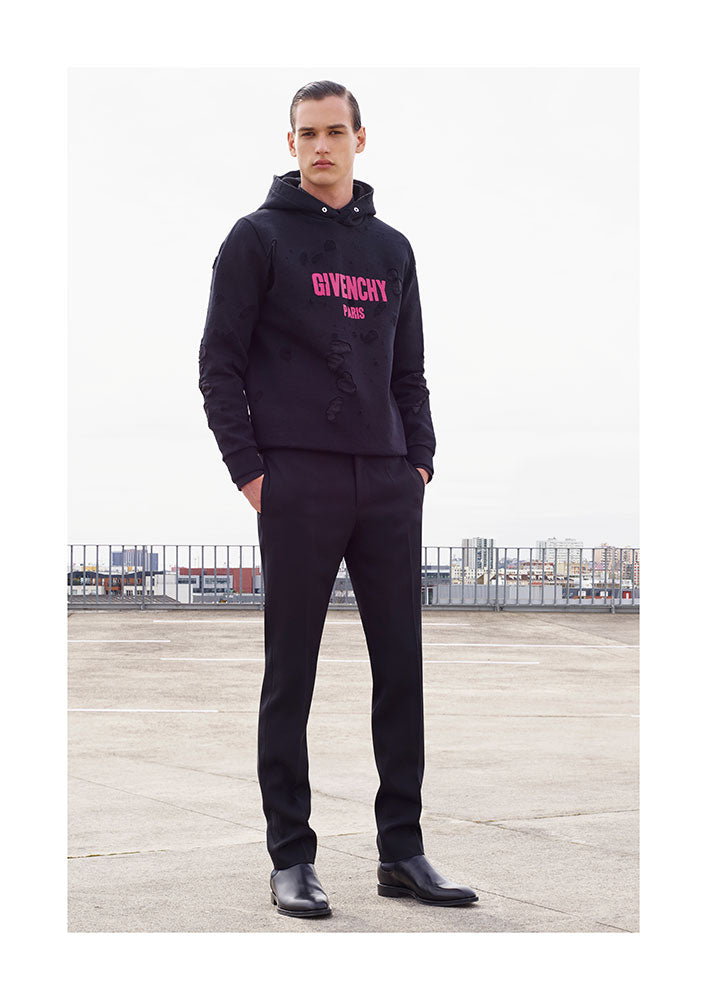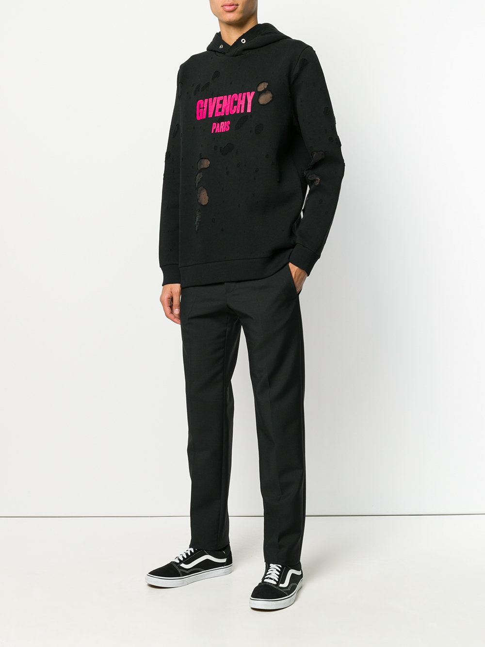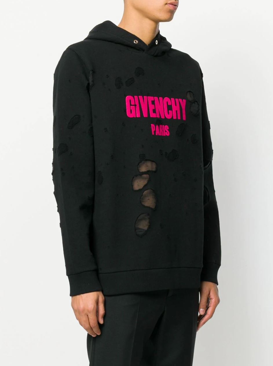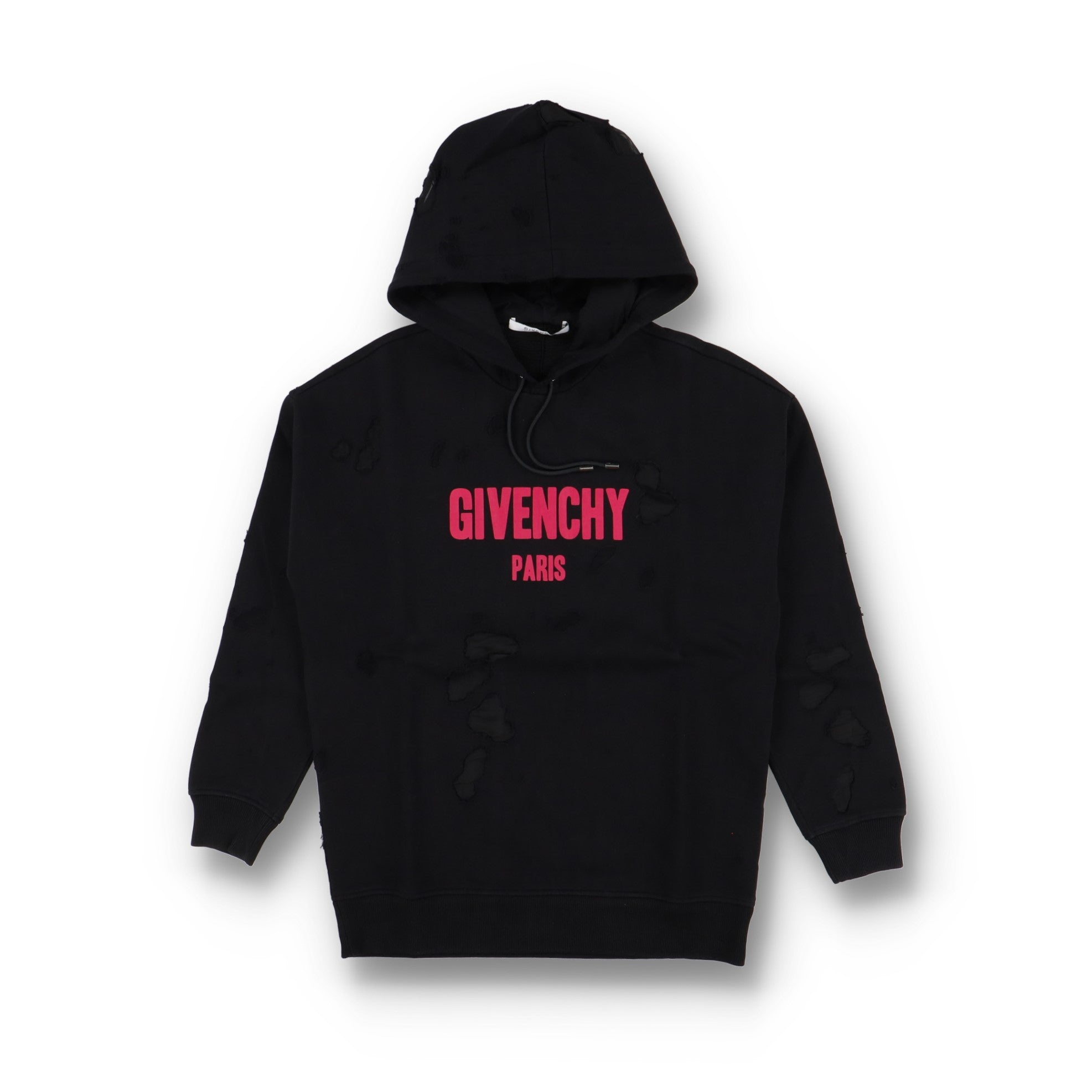 Givenchy Black Fuchsia Destroyed Logo Oversized Hoodie