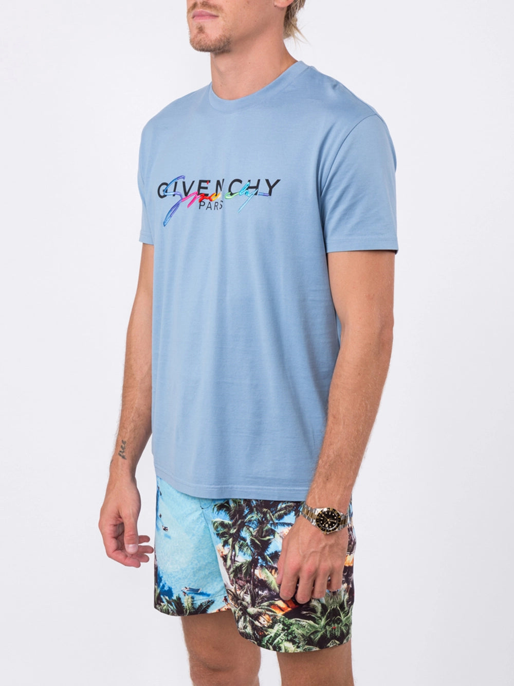 Givenchy Blue Rainbow Signature Logo T-Shirt