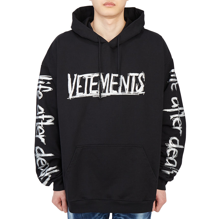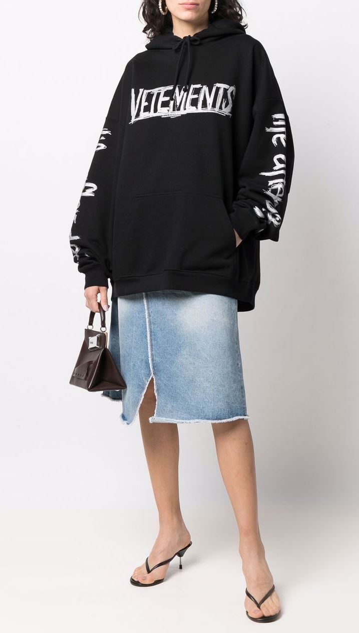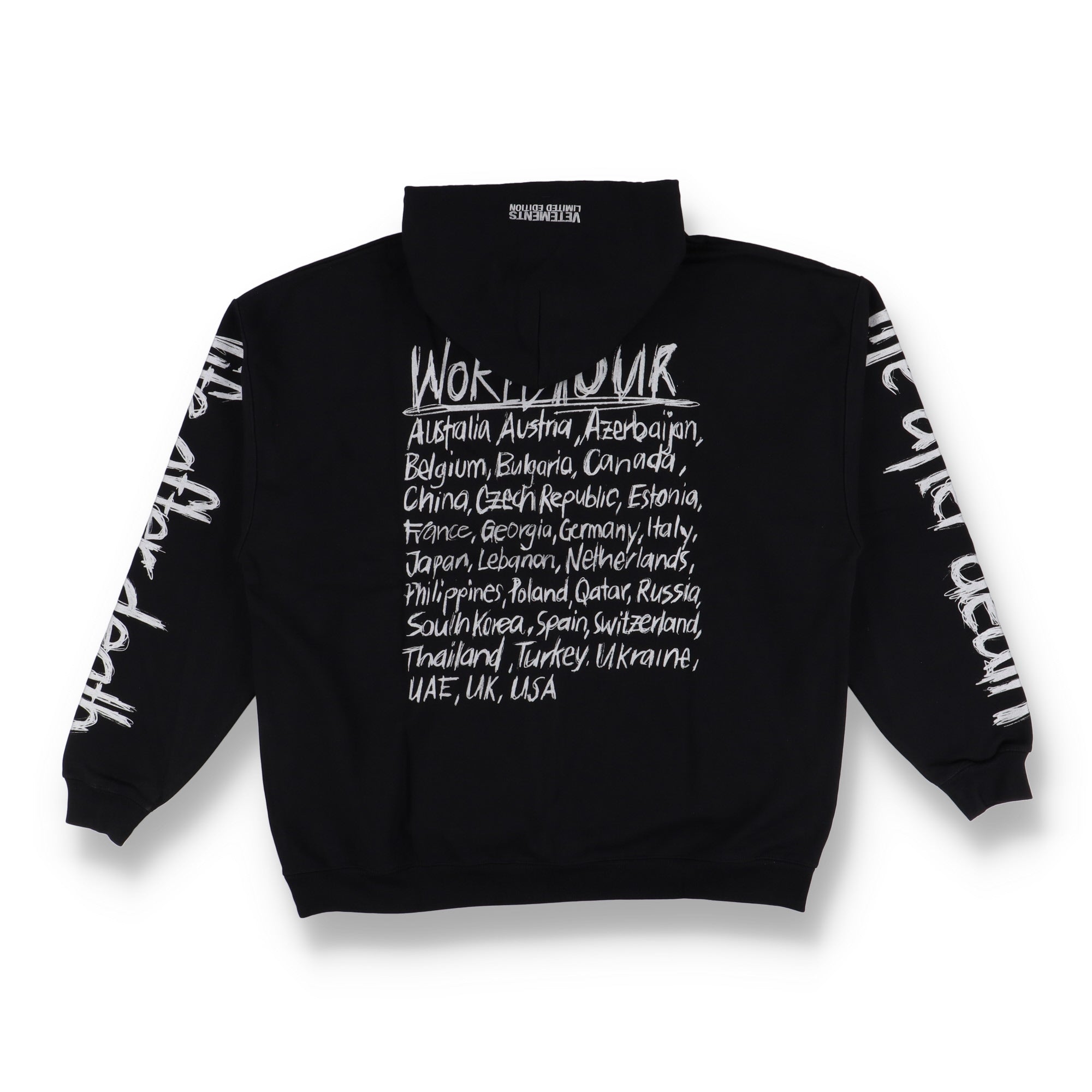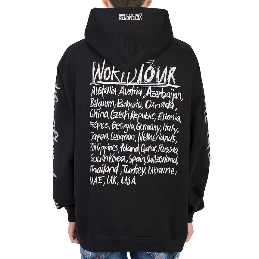 Vetements Black and Silver World Tour Logo Oversized Hoodie