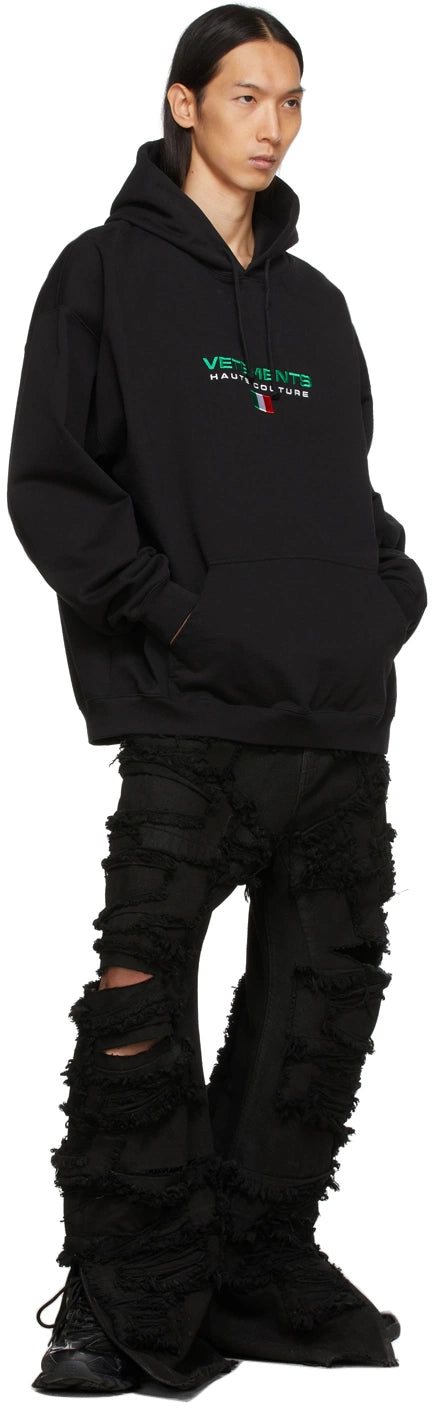 Vetements Black Embroidered Haute Couture Logo Oversized Hoodie