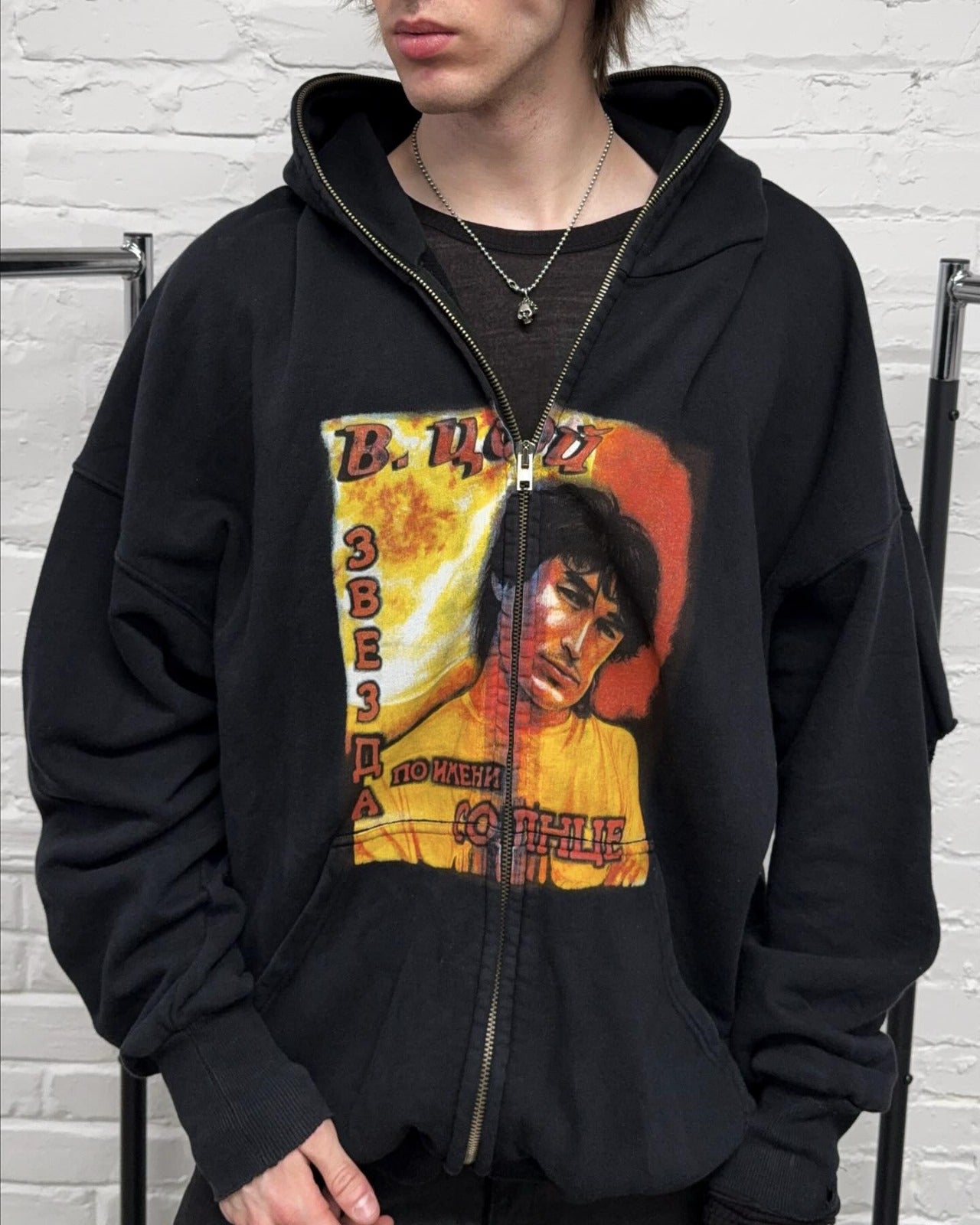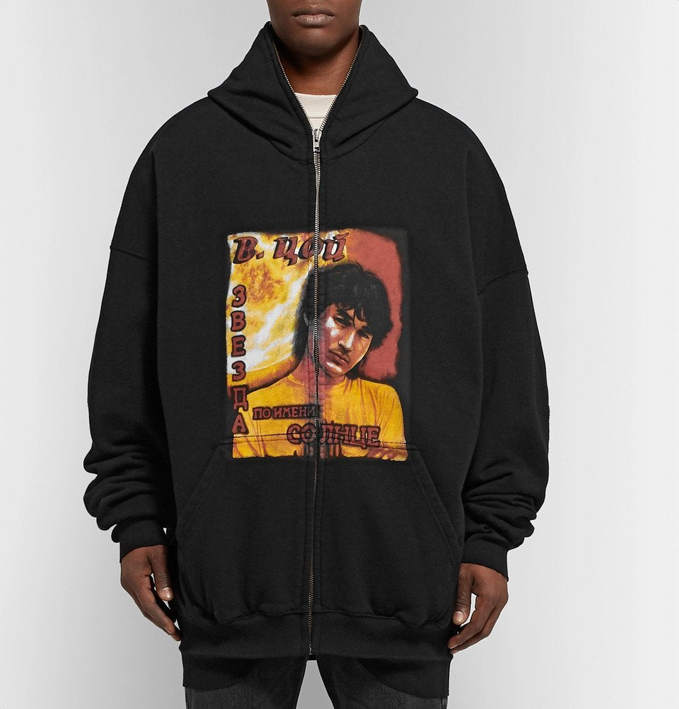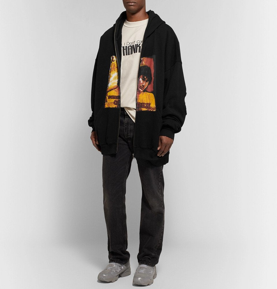 Vetements Black Russian Idol Distressed Oversized Hoodie