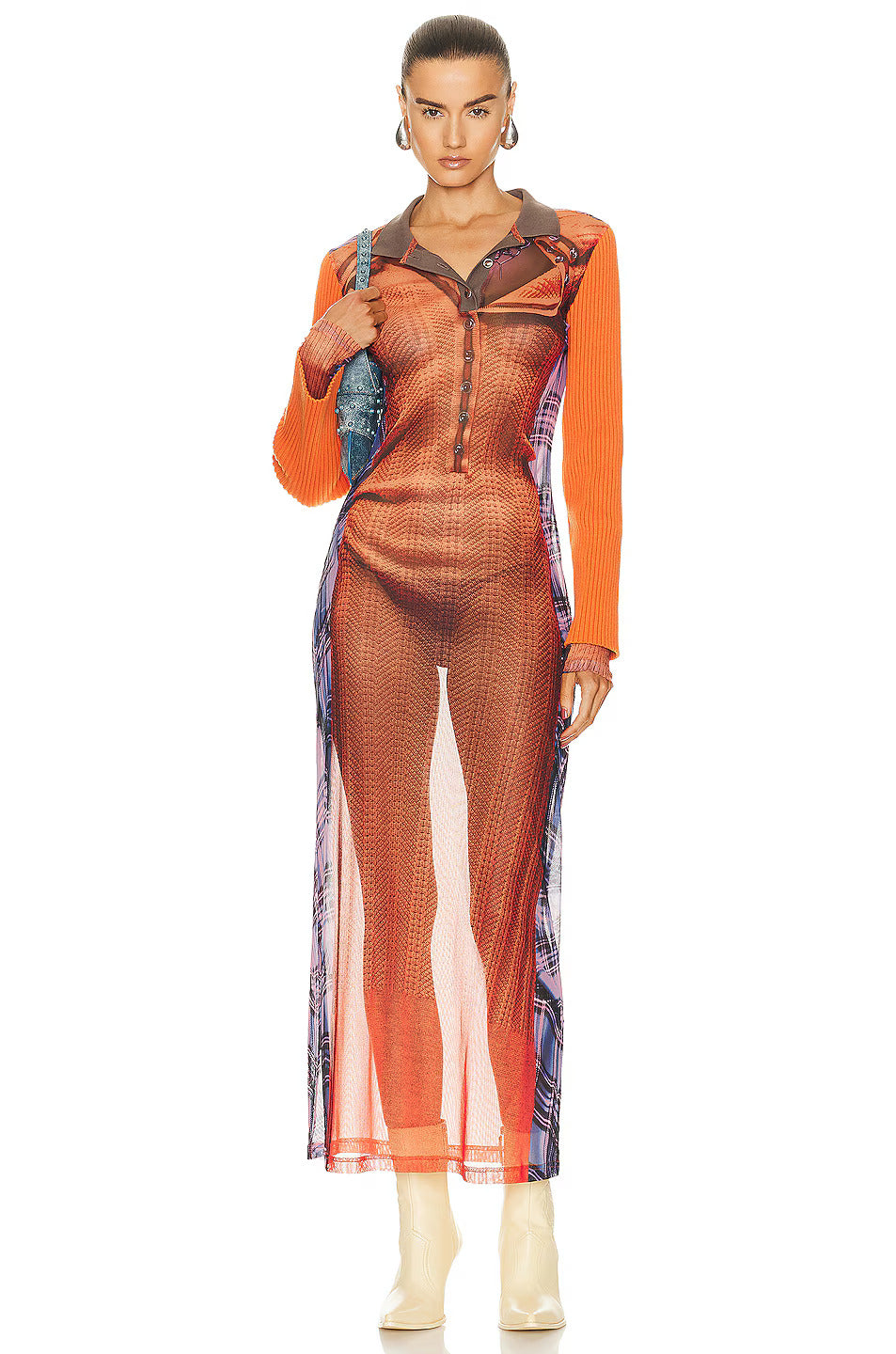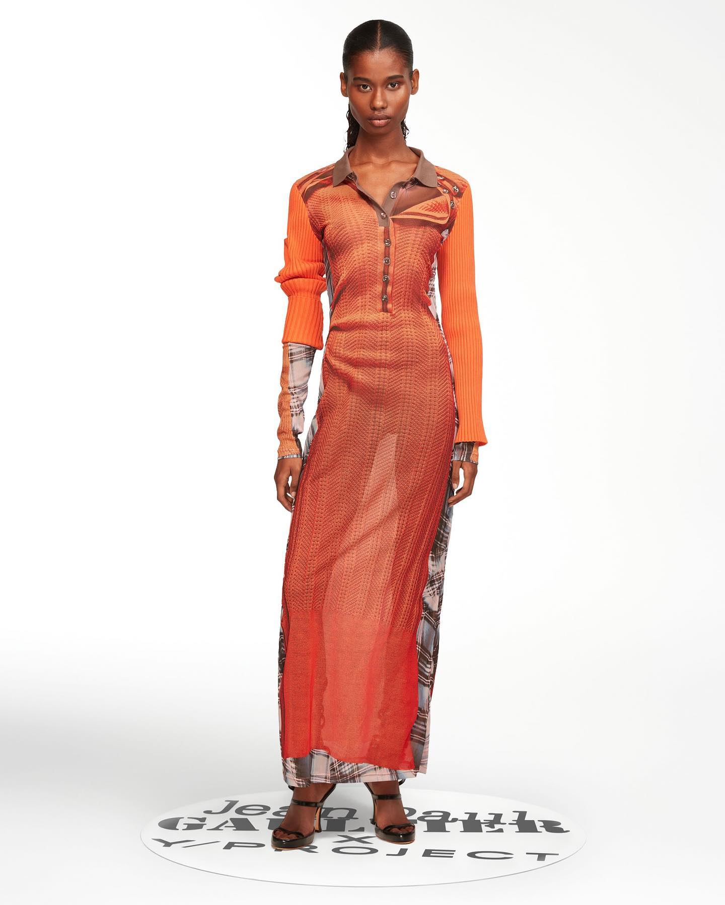 Jean Paul Gaultier × Y/Project Orange Collared Trompe L'oeil Maxi Dress