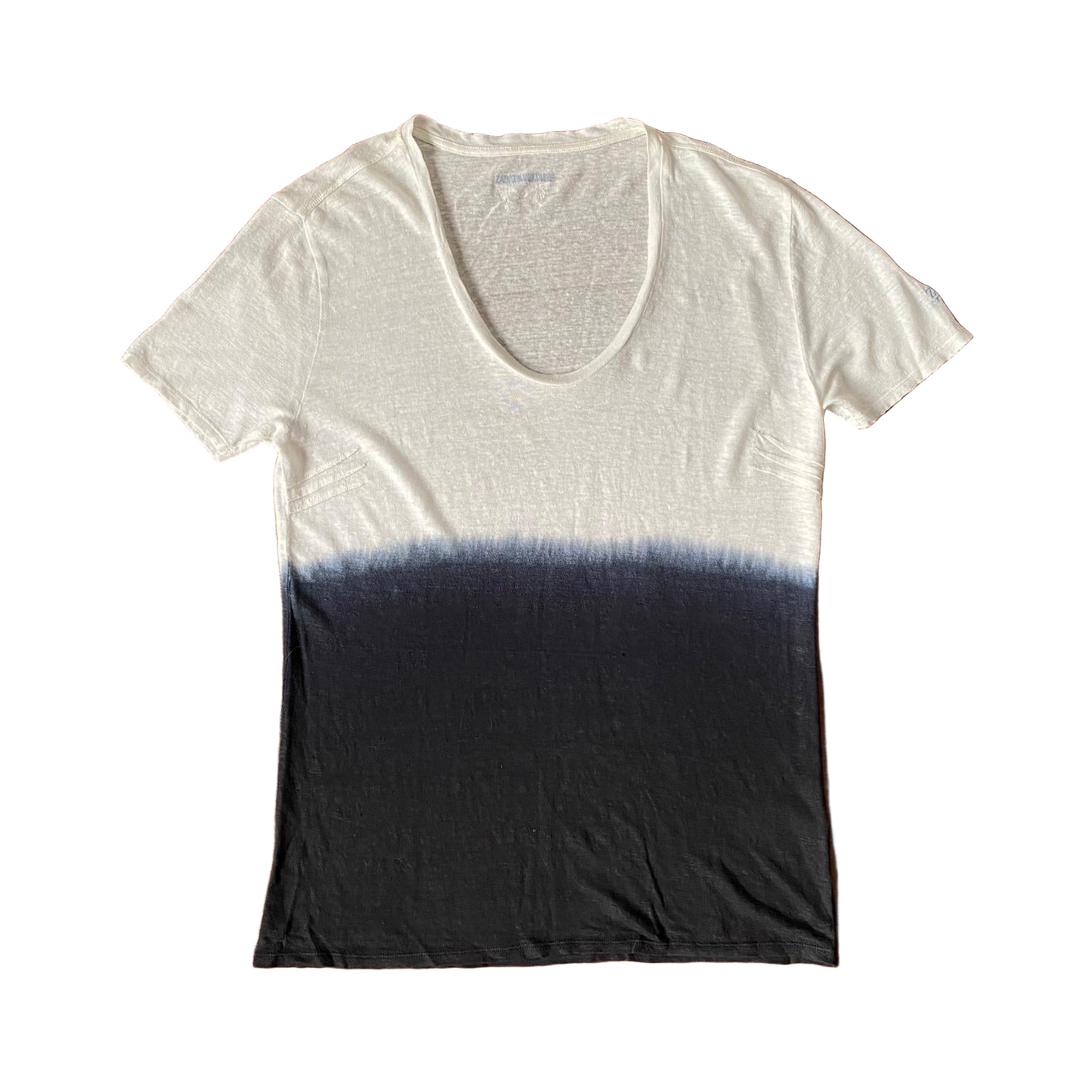 Zadig & Voltaire White and Black Wanda Ombre Linen T-Shirt