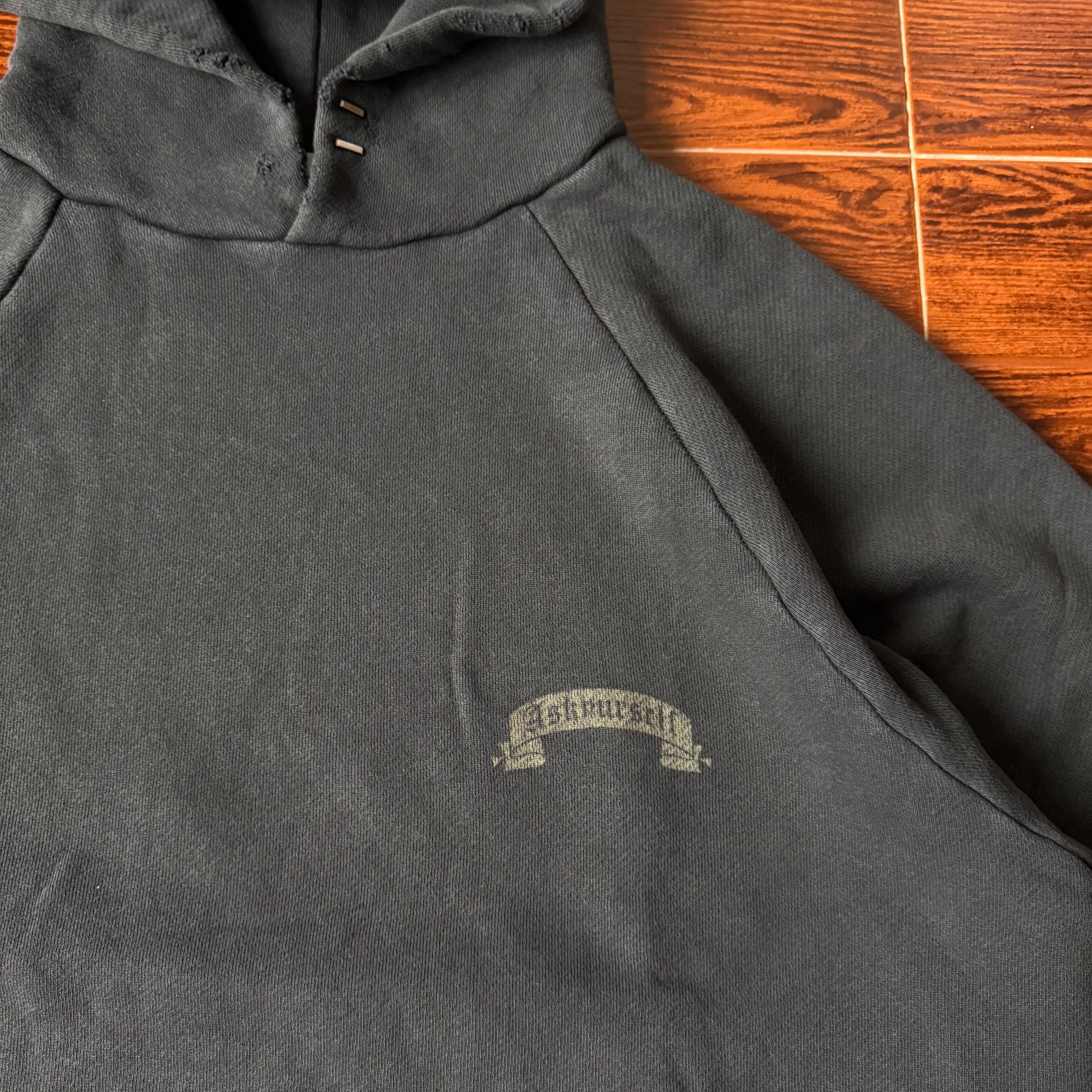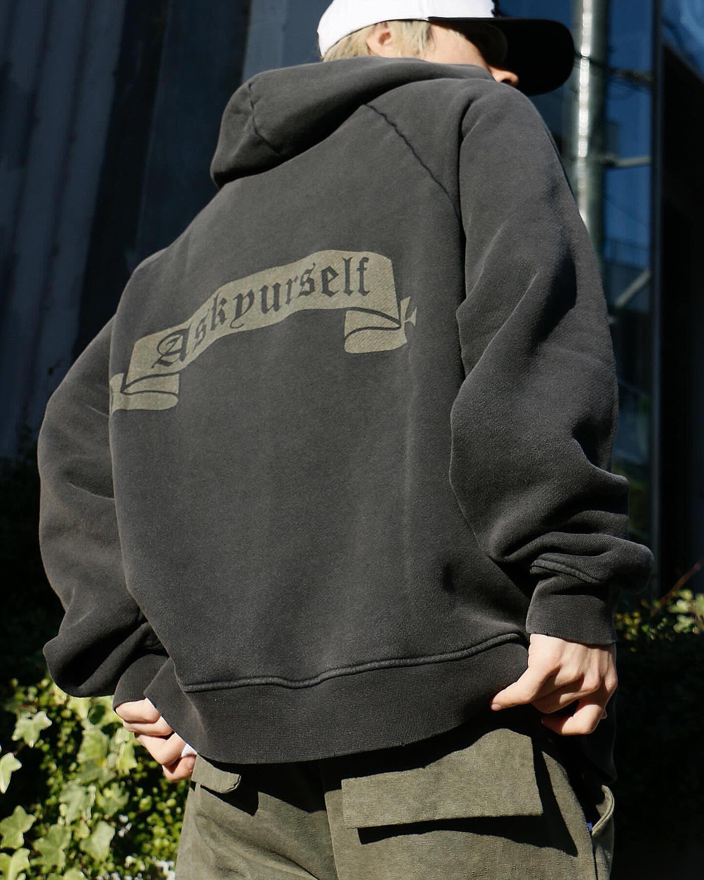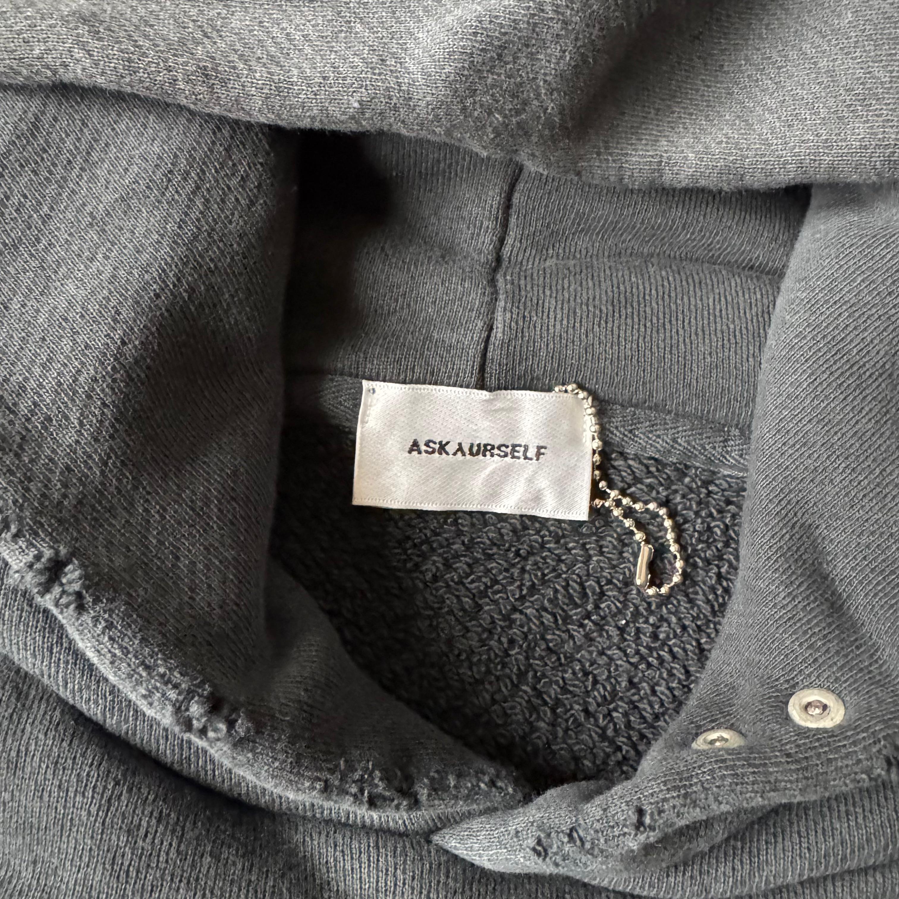 Askyurself Washed Black Banned Repaired Logo Oversized Raglan Hoodie