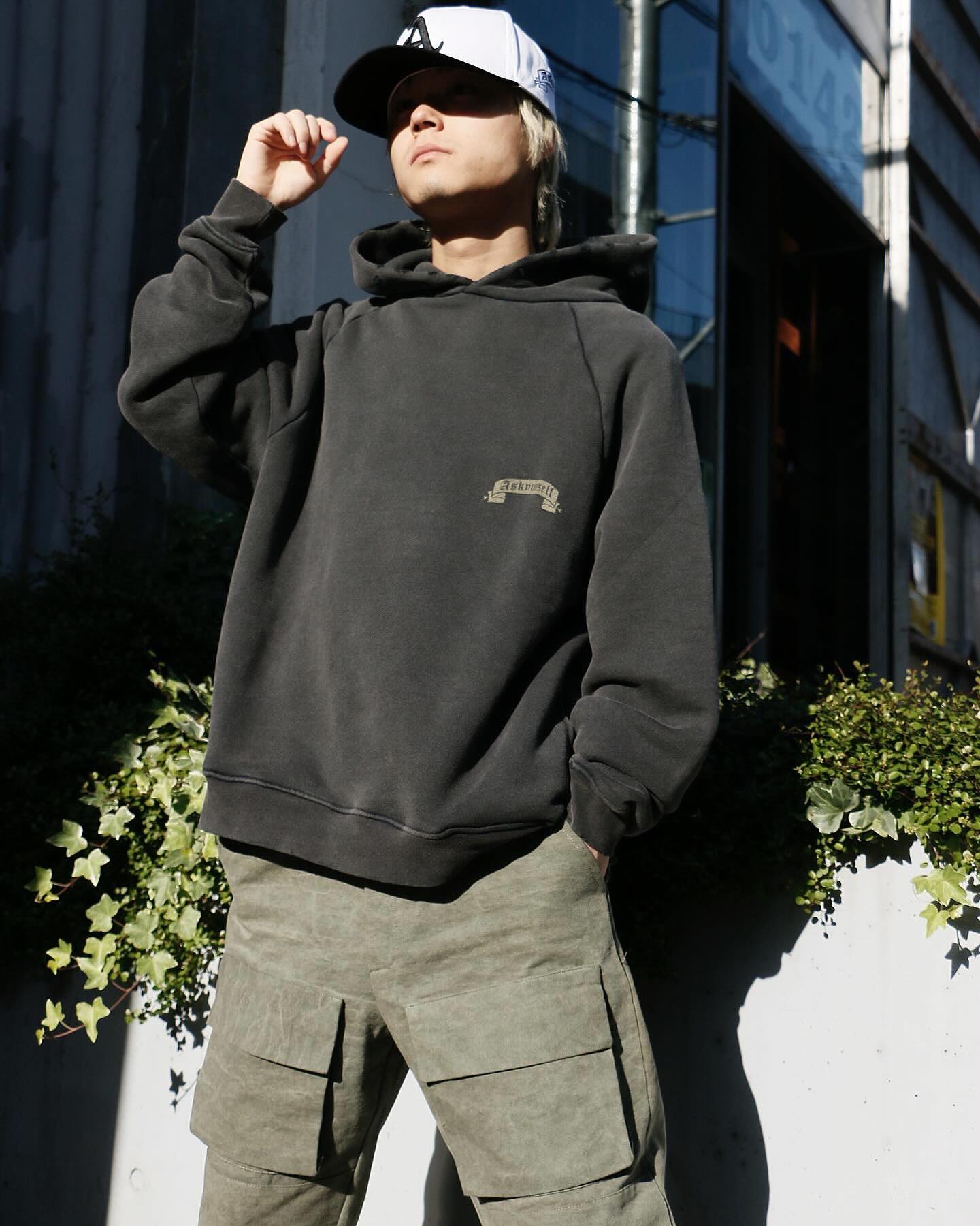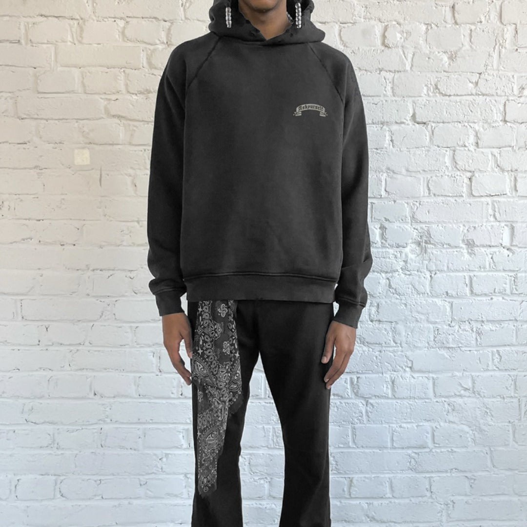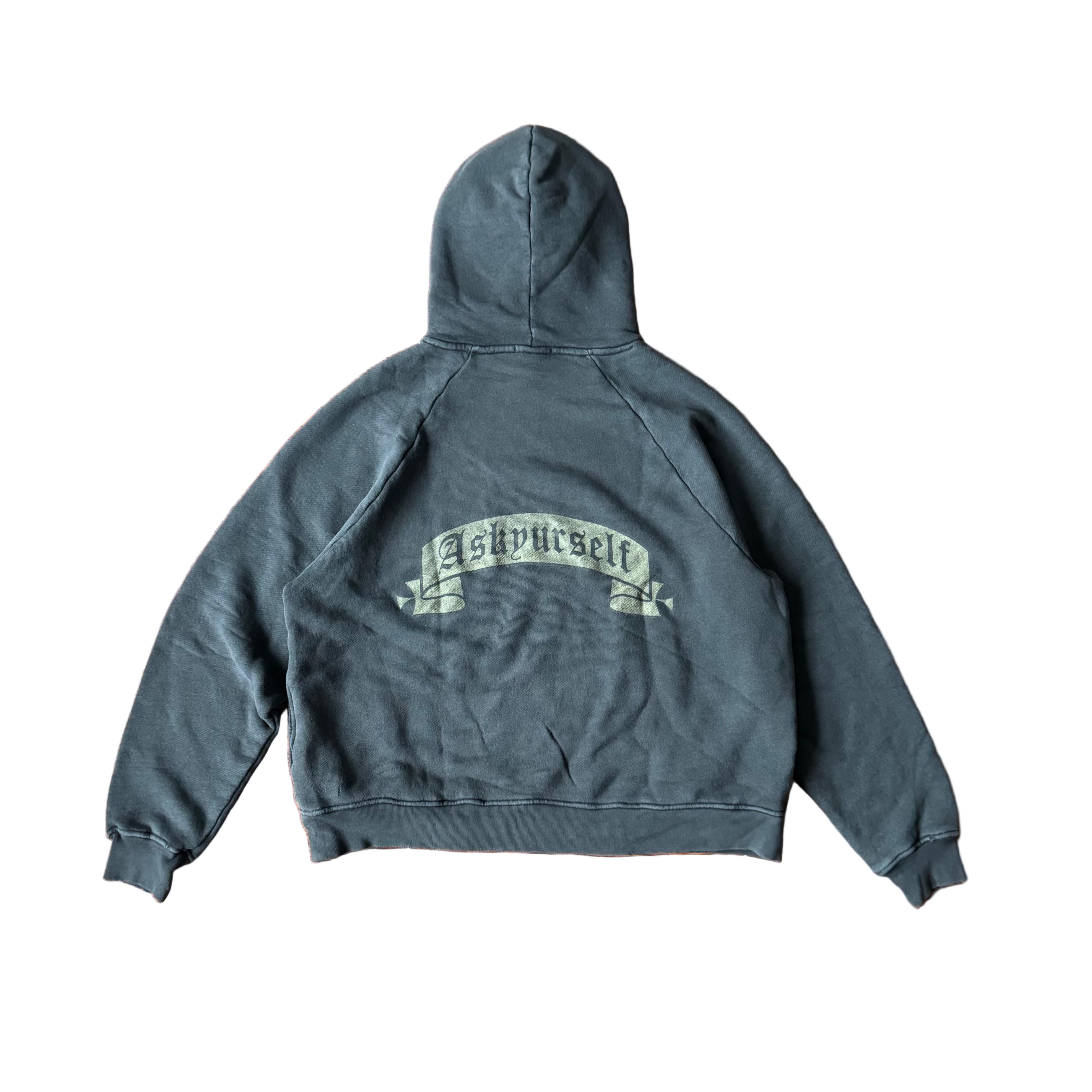Askyurself Washed Black Banned Repaired Logo Oversized Raglan Hoodie