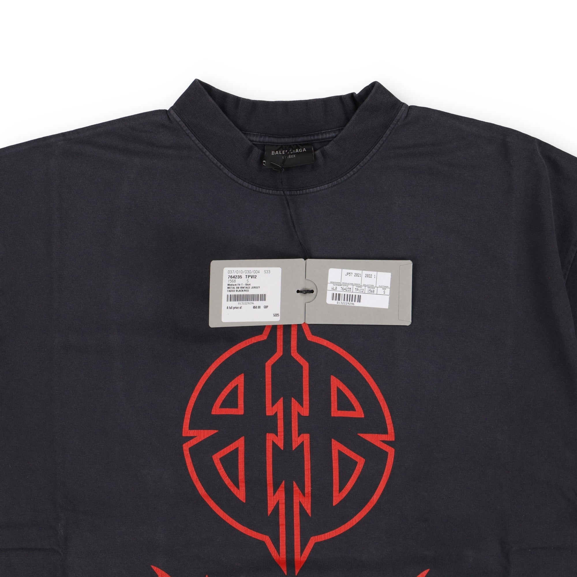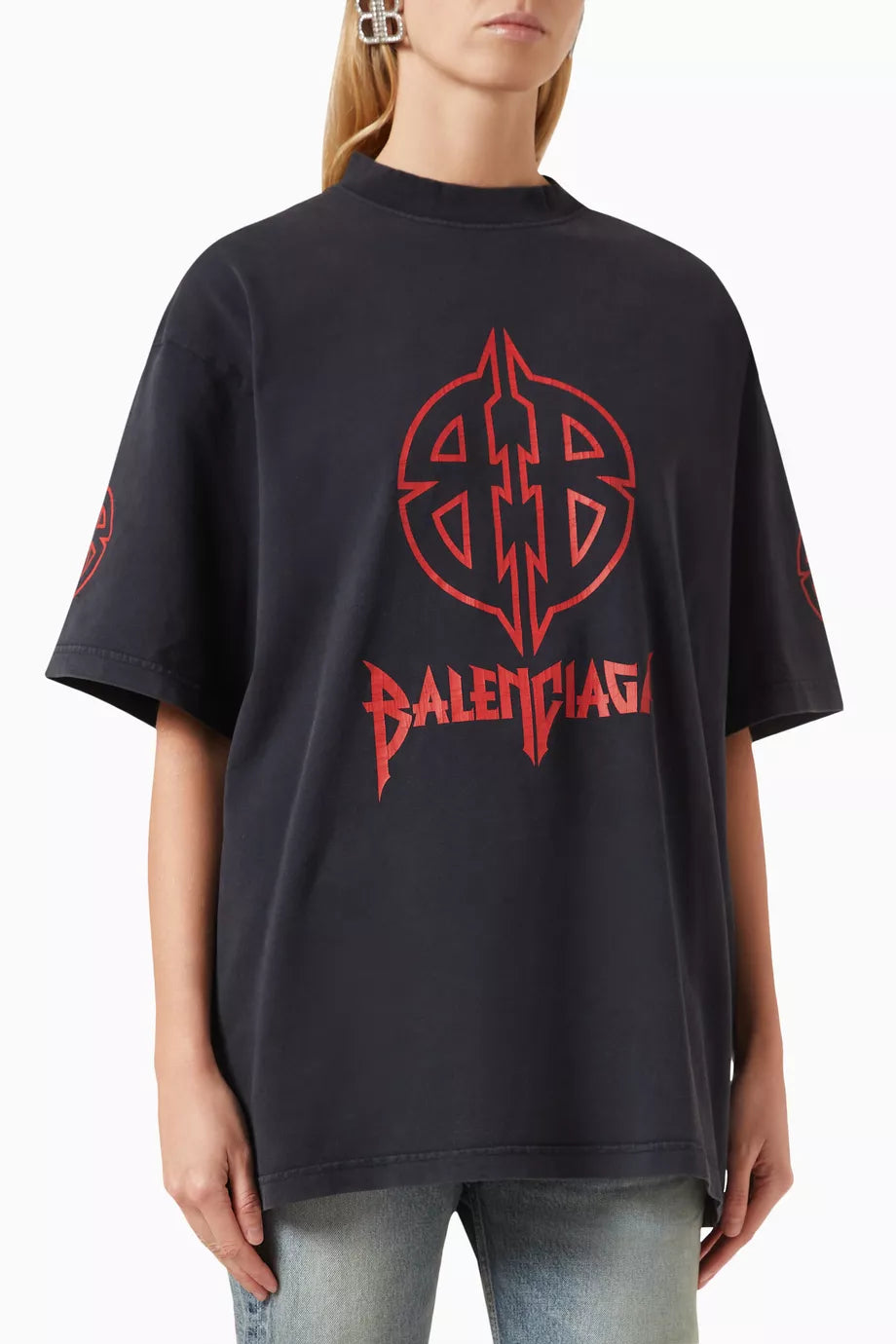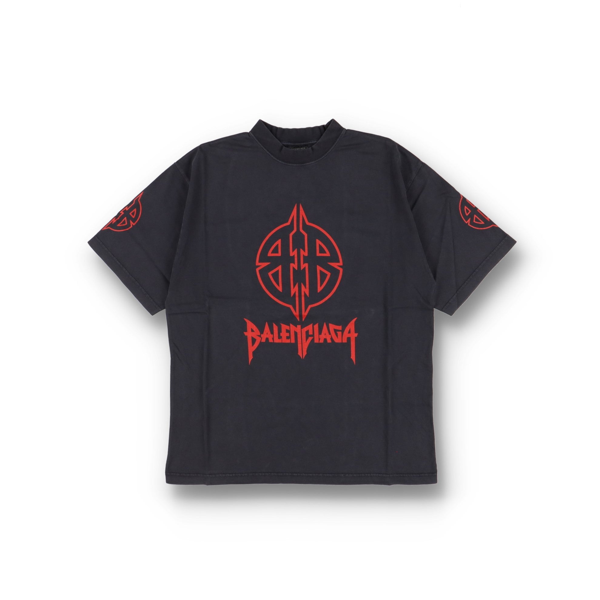 Balenciaga Faded Black Metal BB Logo Oversized T-Shirt