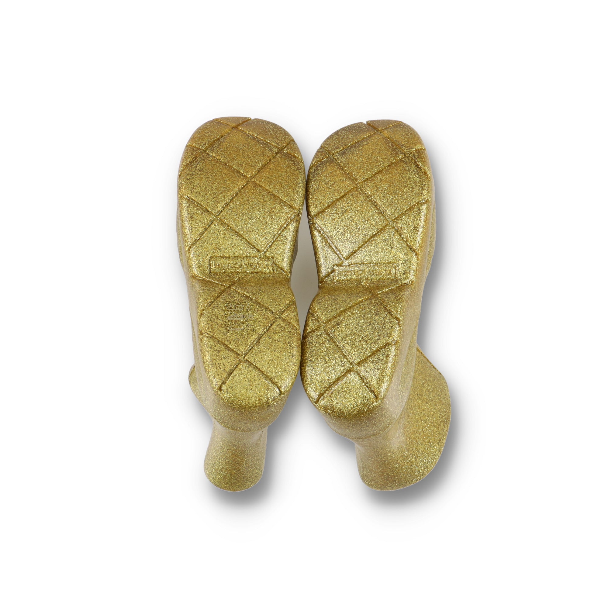 Bottega Veneta Gold Glitter Puddle Rubber Ankle Boots