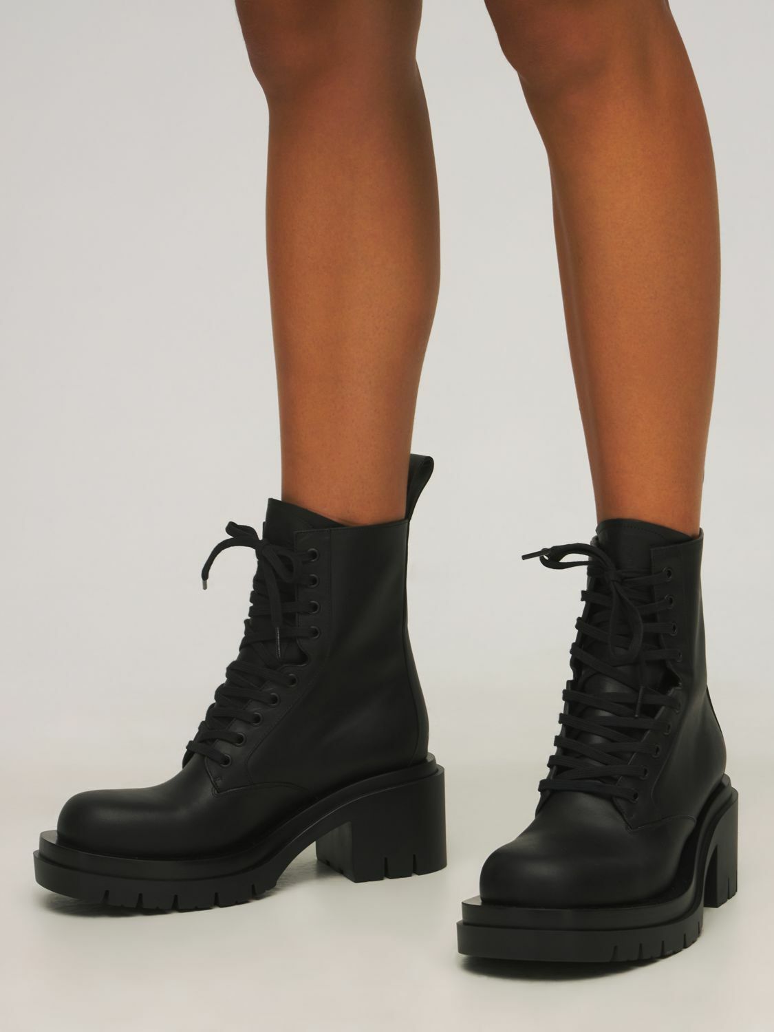 Bottega Veneta Lug Black Lace-Up Ankle Boots