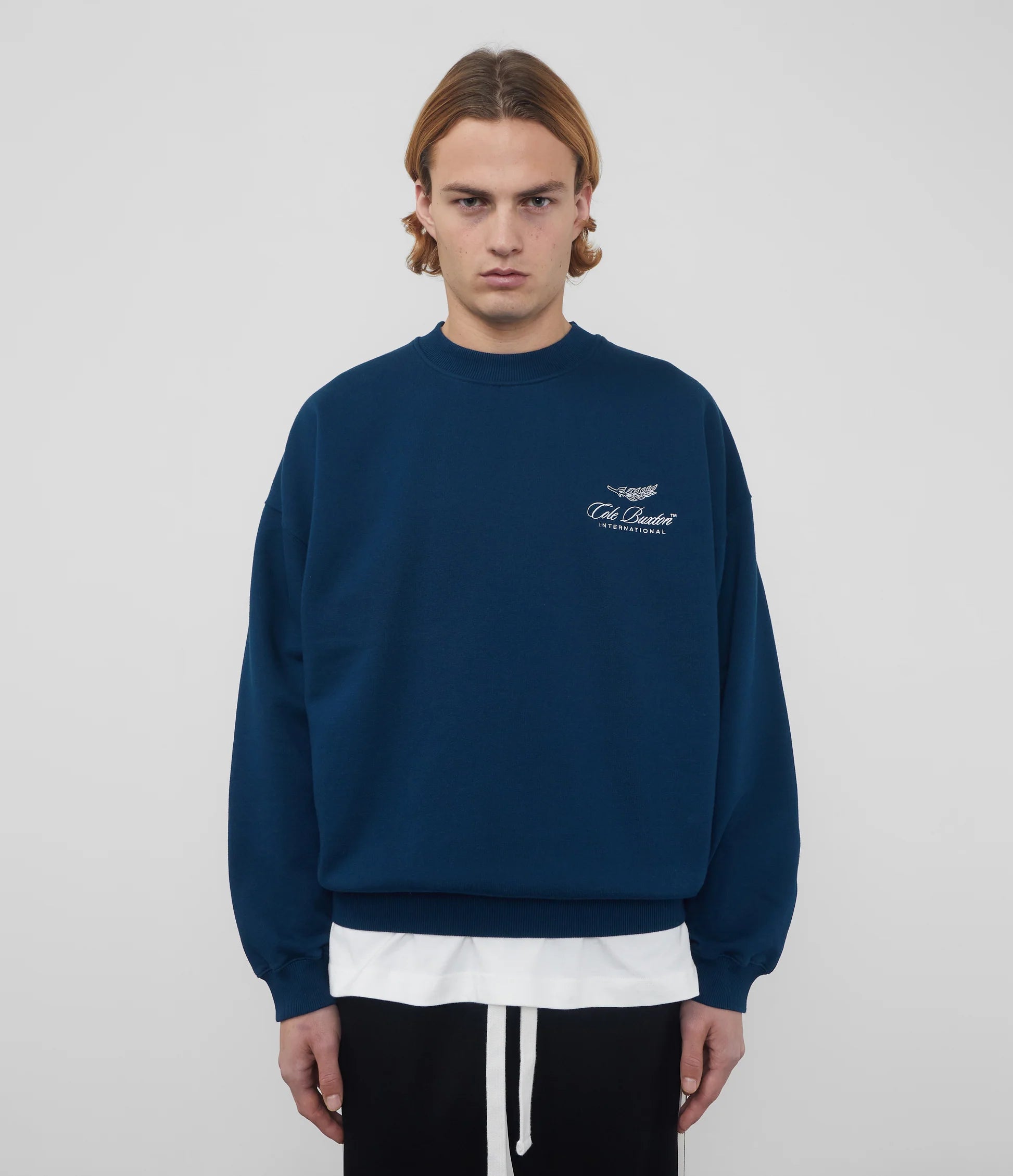 Cole Buxton Blue Embroidered International Logo Oversized Sweatshirt
