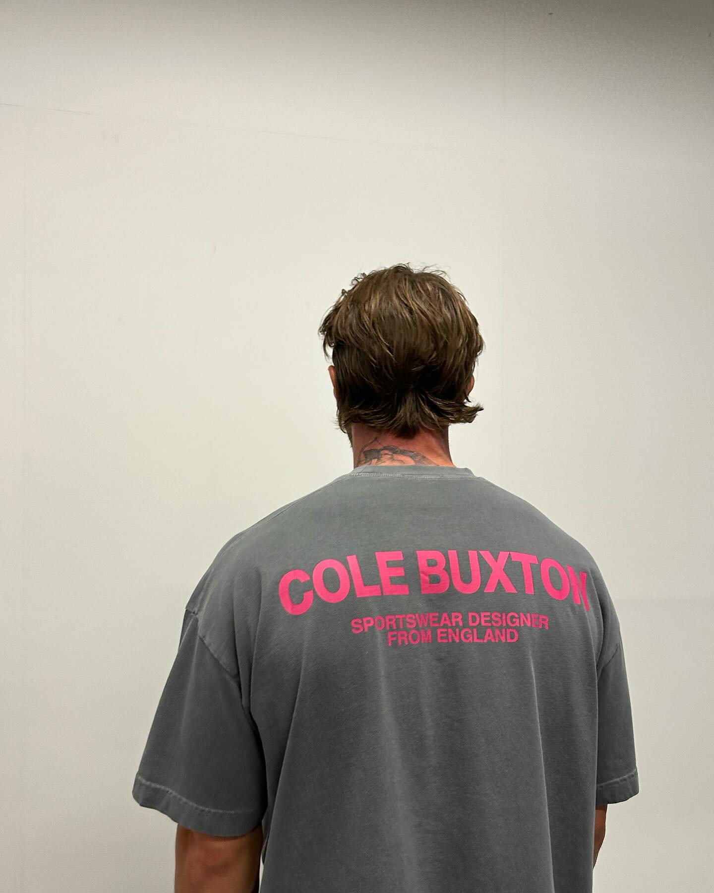 Cole Buxton Grey and Pink Sportswear Logo Oversized T-Shirt