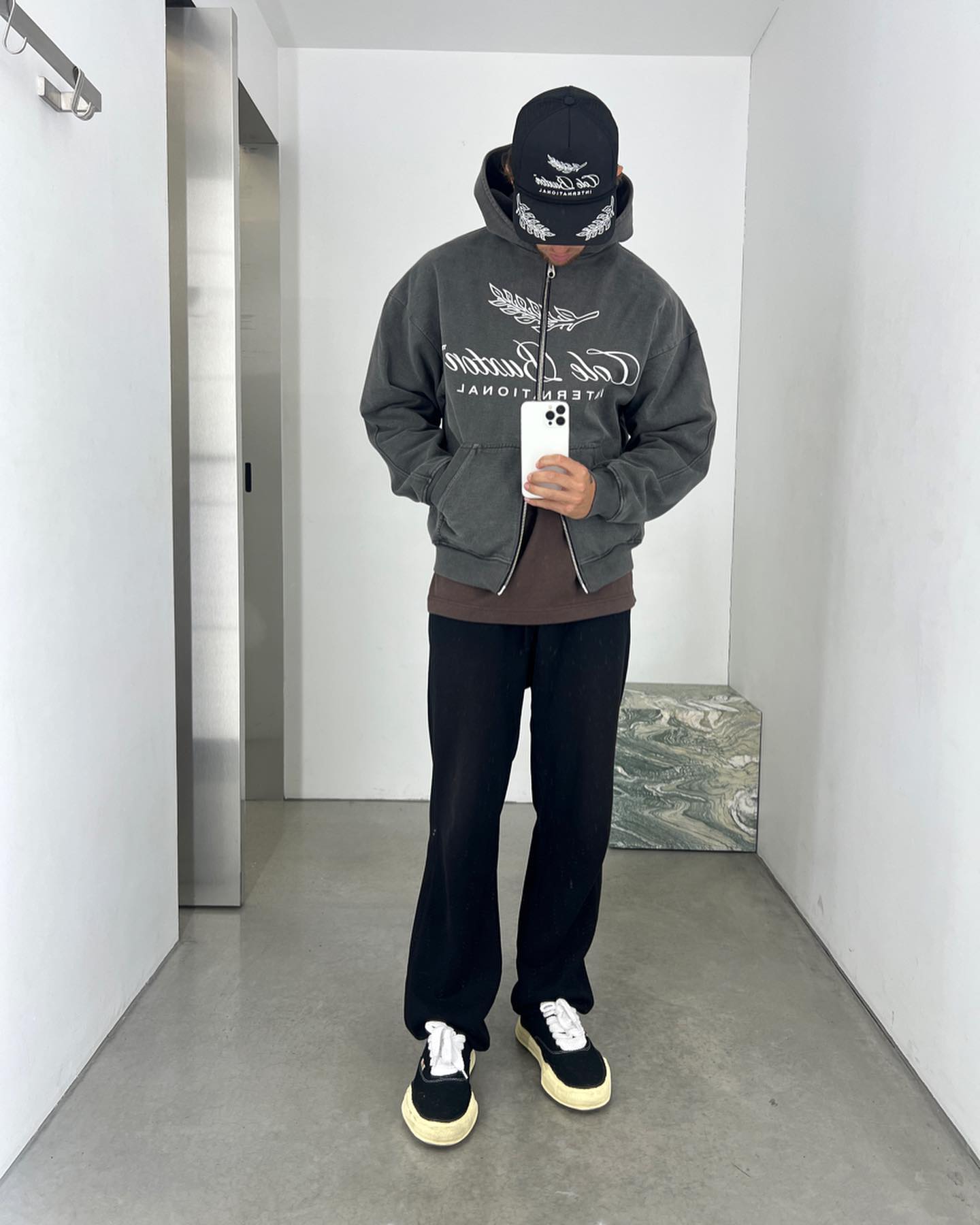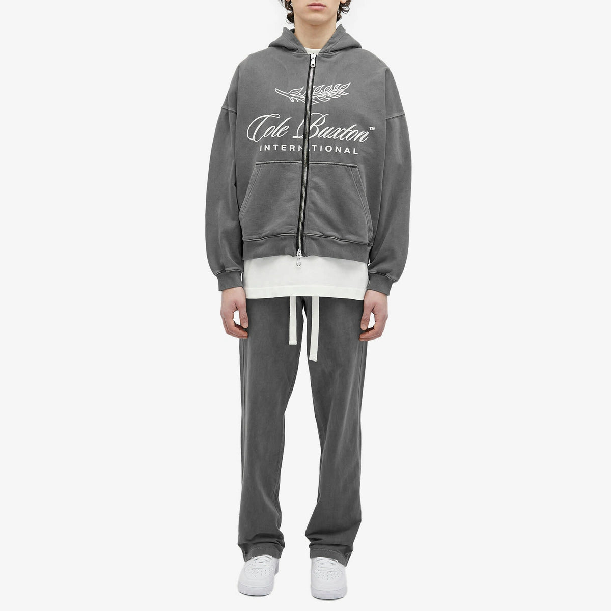 Cole Buxton Washed Black International Logo Oversized Zip Hoodie
