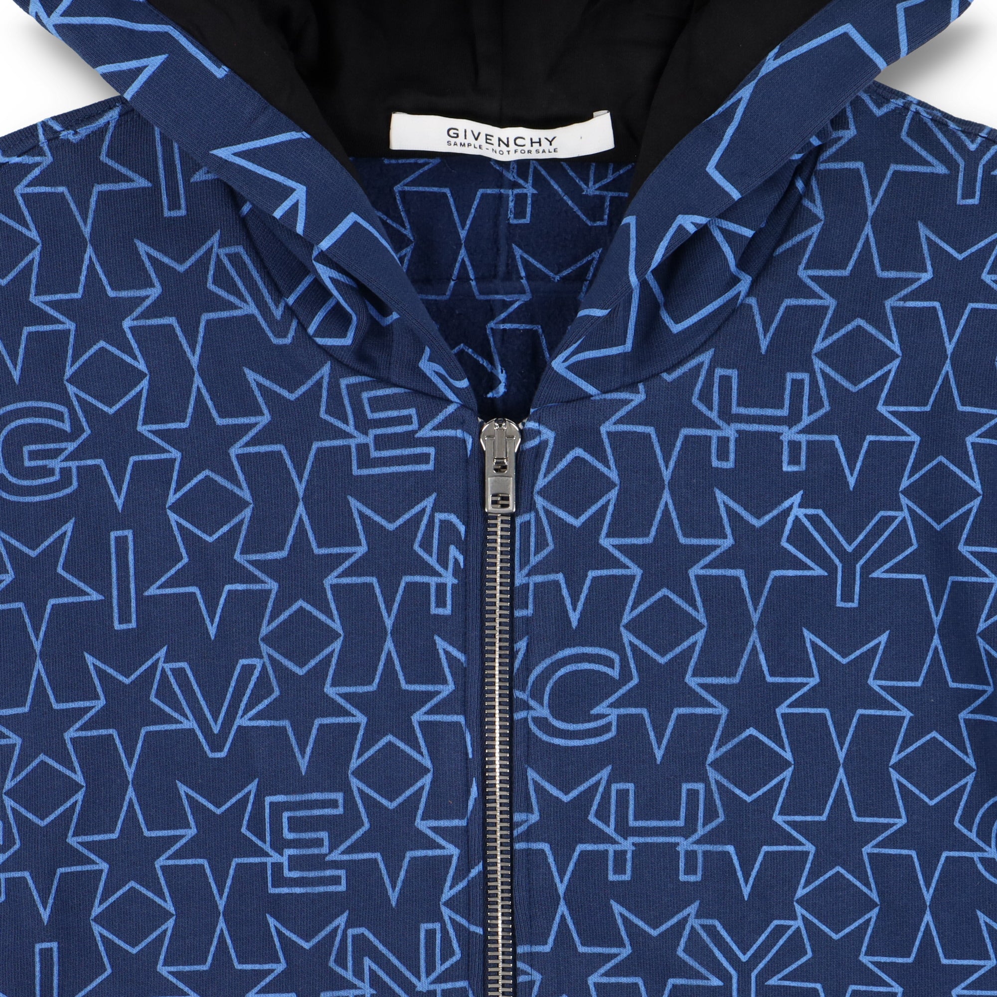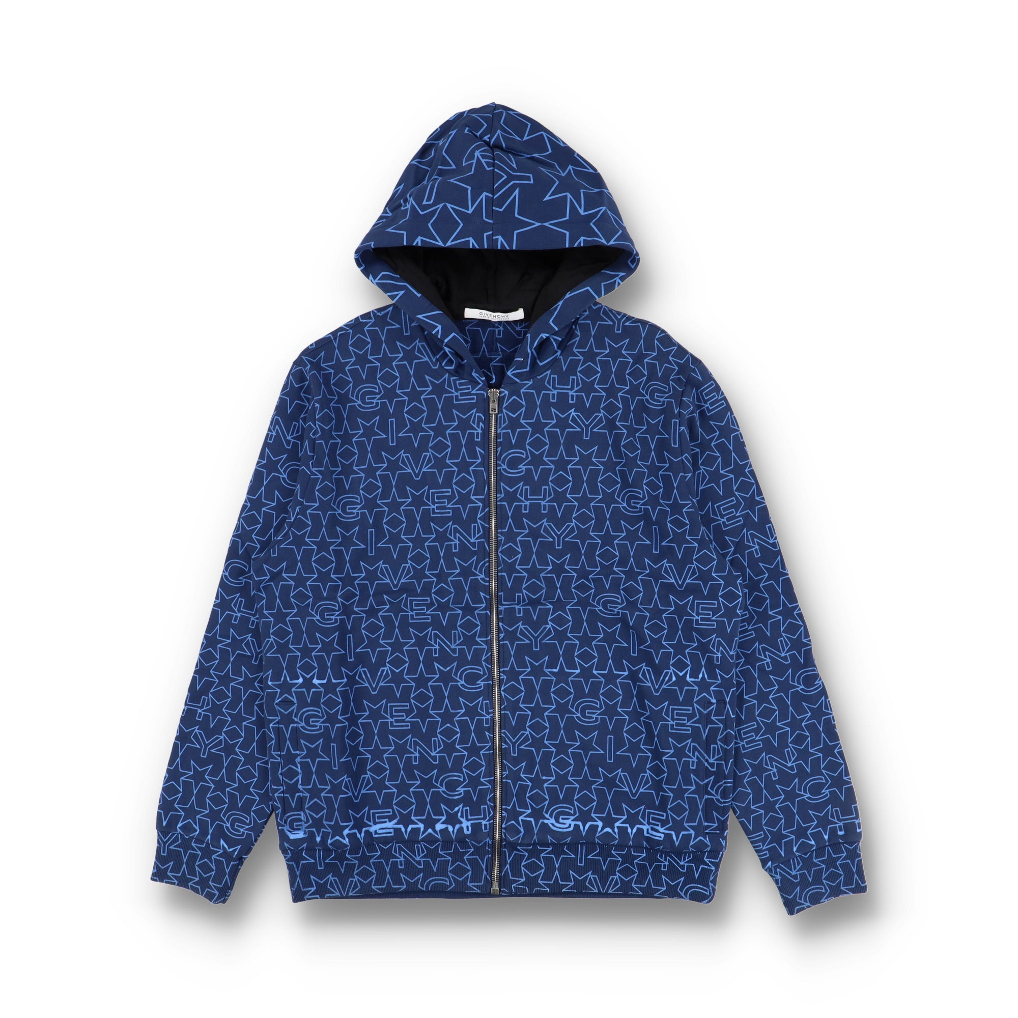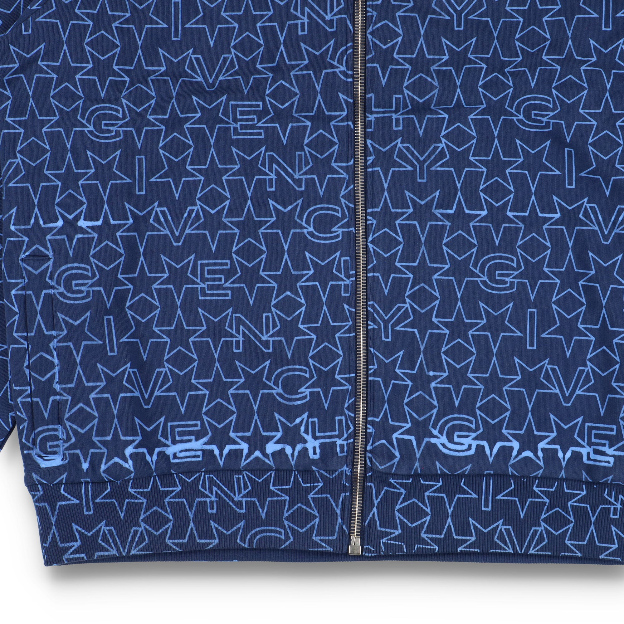 Givenchy 1 of 1 Blue All Over Star Logo Print Oversized Zip Hoodie