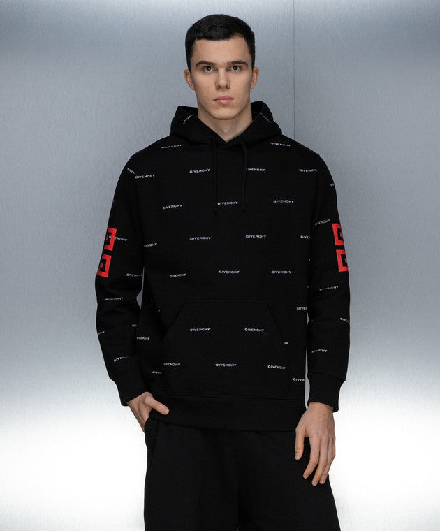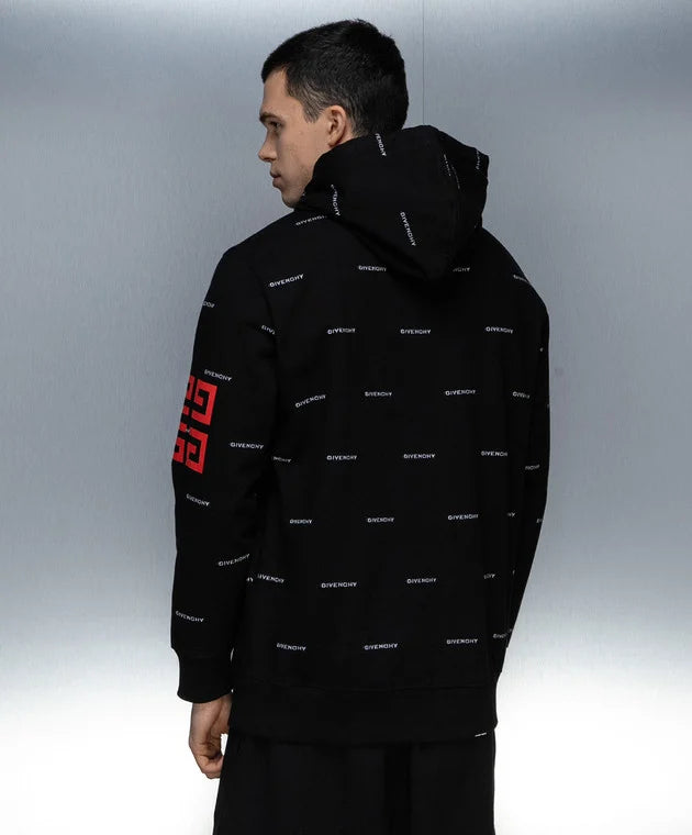 Givenchy Black All Over Jacquard Logo Oversized Hoodie