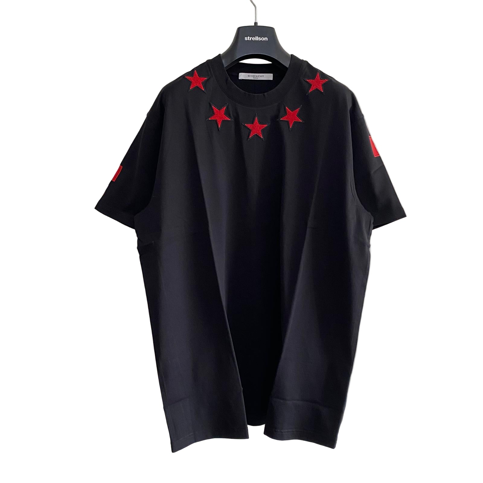 Givenchy Black and Red Felt Stars Oversized T-Shirt