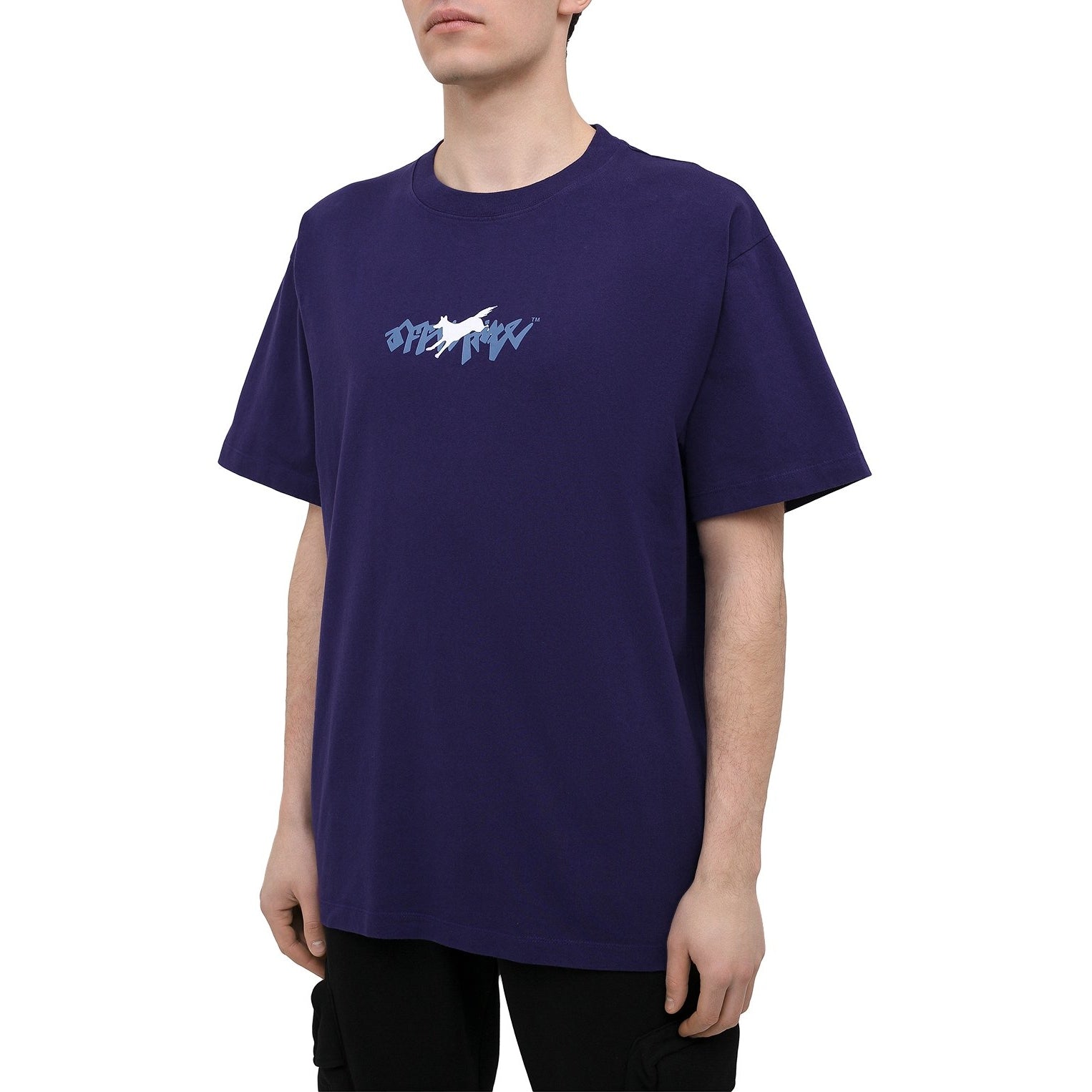 Off-White Blue Running Wolves Logo Oversized T-Shirt