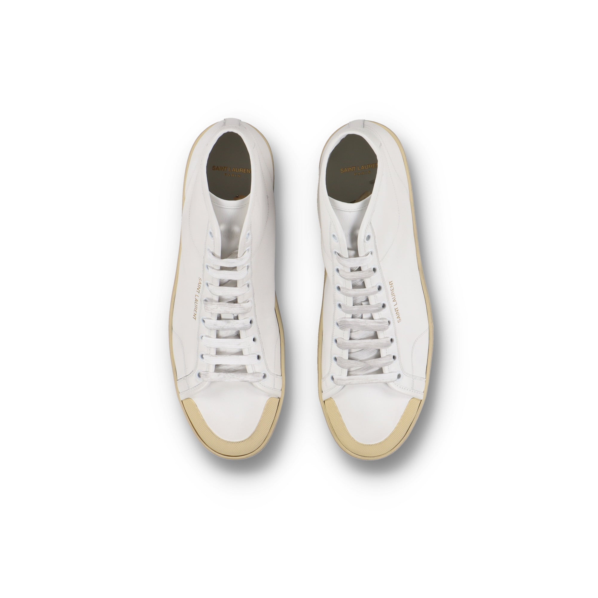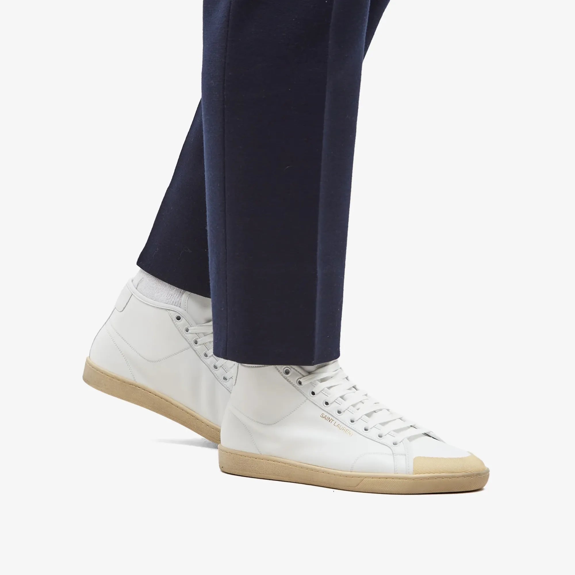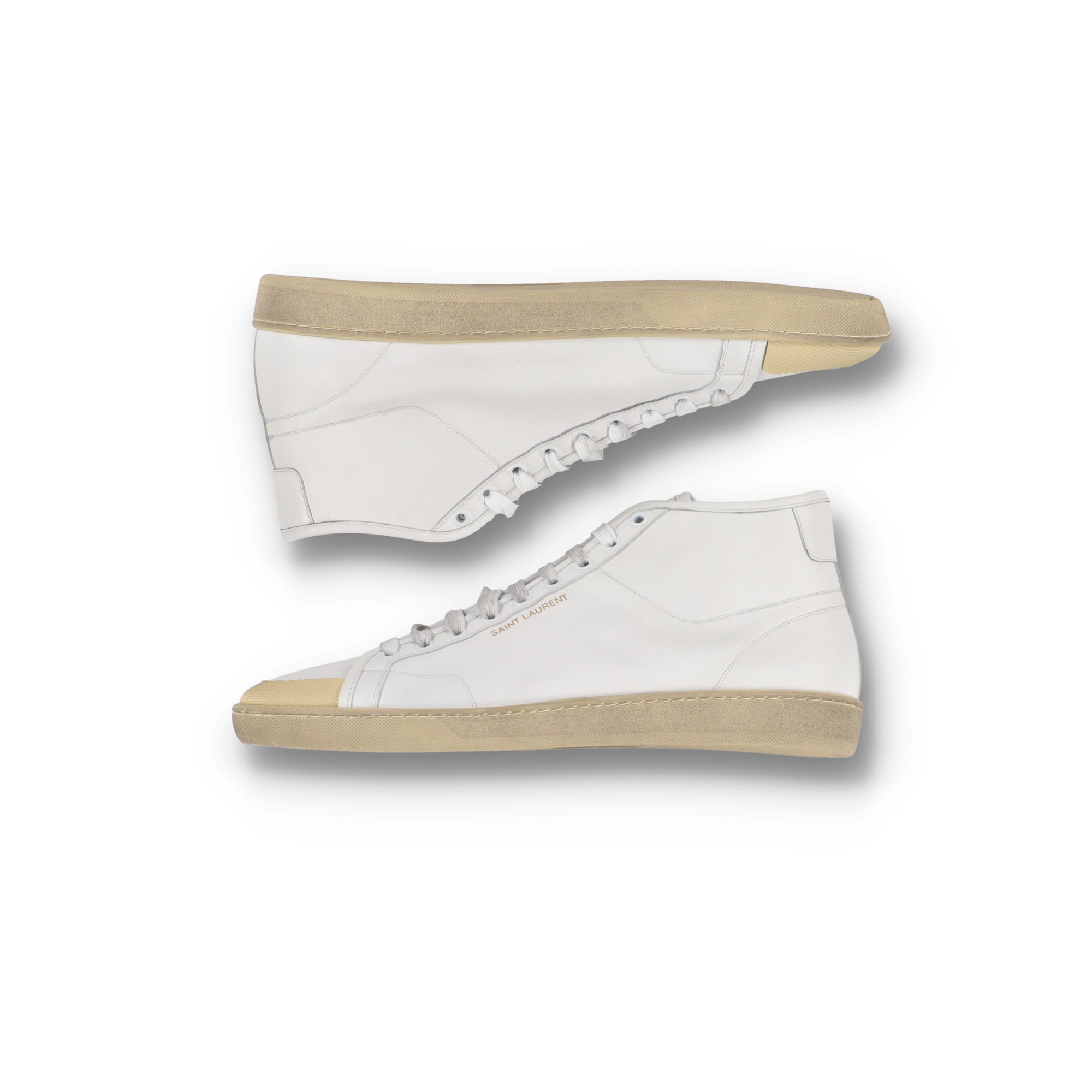 Saint Laurent Paris Aged White Court Classic SL/39 Mid Top Trainers